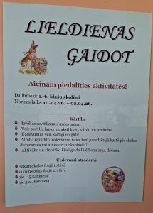 1.- 6. klašu skolēni labprāt iesaistījās aktivitātēs “Lieldienas gaidot”. Bērni veica dažādus uzdevumus: minēja mīklas un krustvārdu mīklas, atjaunoja ticējumus, tautasdziesmas un tekstus par Lieldienu tradīcijām un interesantiem faktiem, atšifrēja vārdus. Lasīt tālāk…