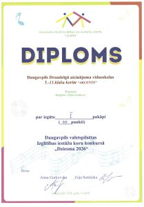 Draudzīgā aicinājuma vidusskolas 4.-11.klašu koris “AKCENTS” ir ieguvis I pakāpi Daugavpils valstspilsētas Izglītības iestāžu koru konkursā “Dziesma 2026”!