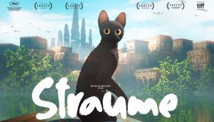 Pilnmetrāžas filma “Straume” ir 3D animācijas tehnikā veidots darbs, kas stāsta par Kaķi – vientuļnieku un individuālistu, kurš negaidītu un lielu plūdu dēļ pazaudē savas mājas un nonāk nelielā laivā, kurā spiests sadarboties ar citiem zvēriem, lai izdzīvotu. Filma veidota režisoram Gintam Zilbalodim raksturīgajā autorrokrakstā – tas ir reizē poētisks un vizuāli grandiozs ceļojums cauri pārplūdušai pasaulei, kurā no cilvēkiem nav ne miņas. Pie “Straumes” strādājusi starptautiska komanda – filmas tēlu animācija veidota Francijā, skaņas pēcapstrāde veikta Beļģijā, tēli un vides elementi, vizuālie efekti un mūzika tapa Latvijā.