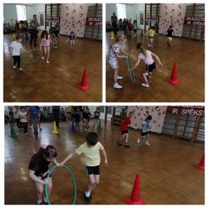 Bērni savu veiklību, spēku, lokanību un izturību apliecināja, piedaloties stafetēs, sadarbojoties sporta spēlēs un jautri pavadot laiku. Vislielāko jautrību bērniem sagādāja bumbas nešana divatā, pārvietošanās pāros ar sasietām kājām, bumbas ripināšana apkārt konusiem un lēkšana pa riņķiem.