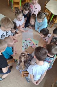 Visas nedēļas garumā bērni radīja darbus dažādās tehnikās un ar tiem rotāja grupu. Ar krāsainām lentītēm tika izrotāts arī laukumiņā augošais ceriņš, tā radot svētku noskaņu arī āra vidē. Lai svētki būtu ne tikai krāsaini, bet arī gardi, bērni atnesa no mājām – pašu krāsotas olas, kuru skaistumu, košumu un gardumu varēja novērtēt katrs bērns! Grupā kopīgiem spēkiem tika pagatavotas arī garšīgas un veselīgas konfektes no želejas.