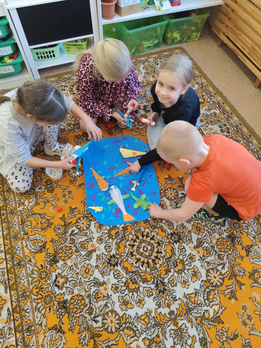 Žūrijas vērtējums: Grupas darba izcila režija no skolotāja puses. Skolotājs iesaistījis bērnus, katram individuāli veidojot savu darba fragmentu, kopā radot lielisku, dekoratīvu kompozīciju, kas nepārprotami saistīta ar ūdens tēmu un raisa pozitīvas emocijas. Panākts mākslinieciski teicams rezultāts.