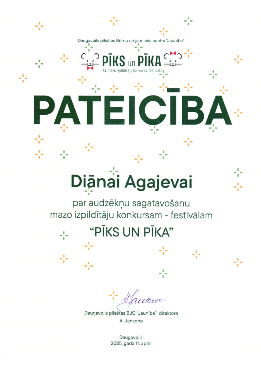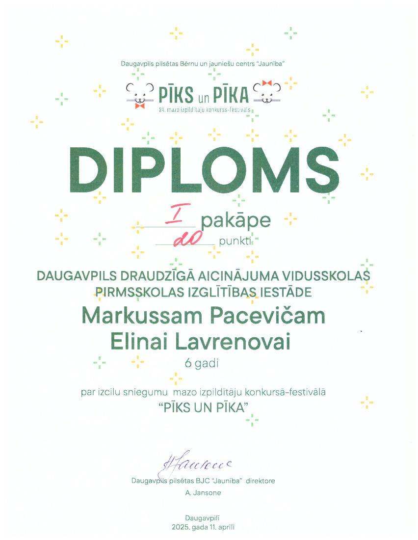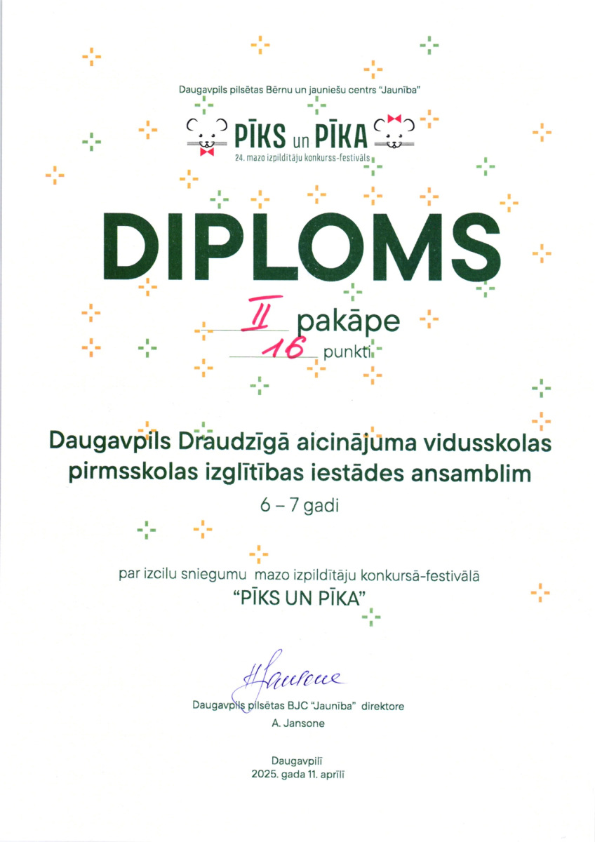Daugavpils Draudzīgā aicinājuma vidusskolas pirmsskolas posma audzēkņus ar panākumiem konkursā-festivālā „Pīks un Pīka 2025”!