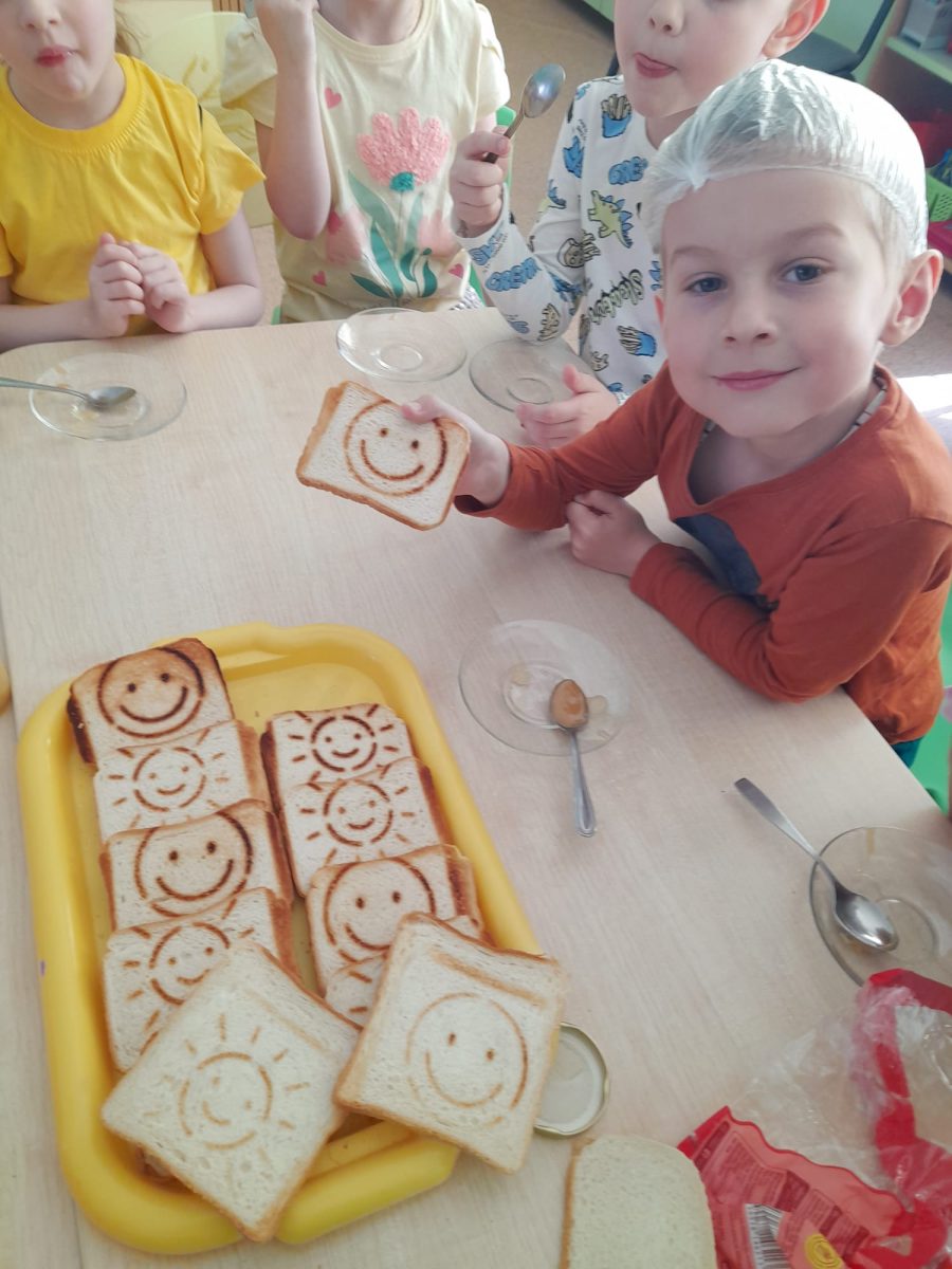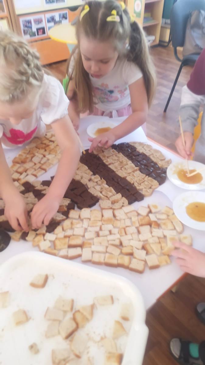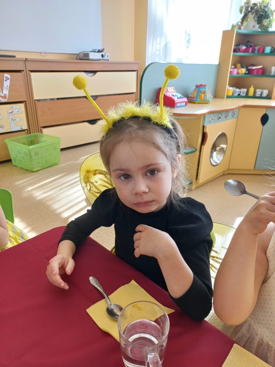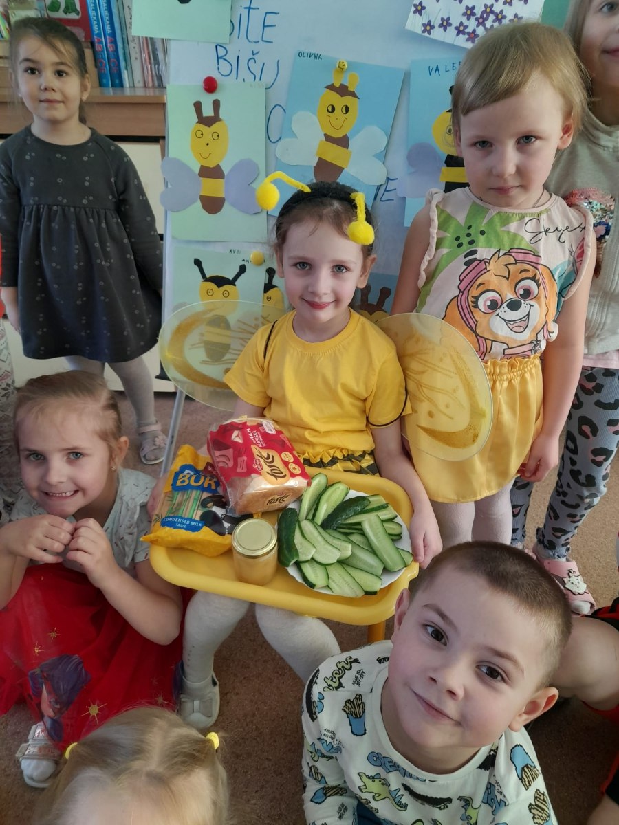 Savukārt grupas “Vālodzīte” bērni vispirms noskatījās video par bitēm un biškopja darbu, un tad visi iesaistījās “garšīgās bitītes” pagatavošanā. Zēni grieza nelielos gabaliņos maizīti, meitenes to nozieda ar medu un salika bitītes siluetu. Bērni ar gardām mutēm notiesāja “bitīti” līdz pēdējai kripatiņai, uzdzerot smaržīgu kumelīšu tēju.