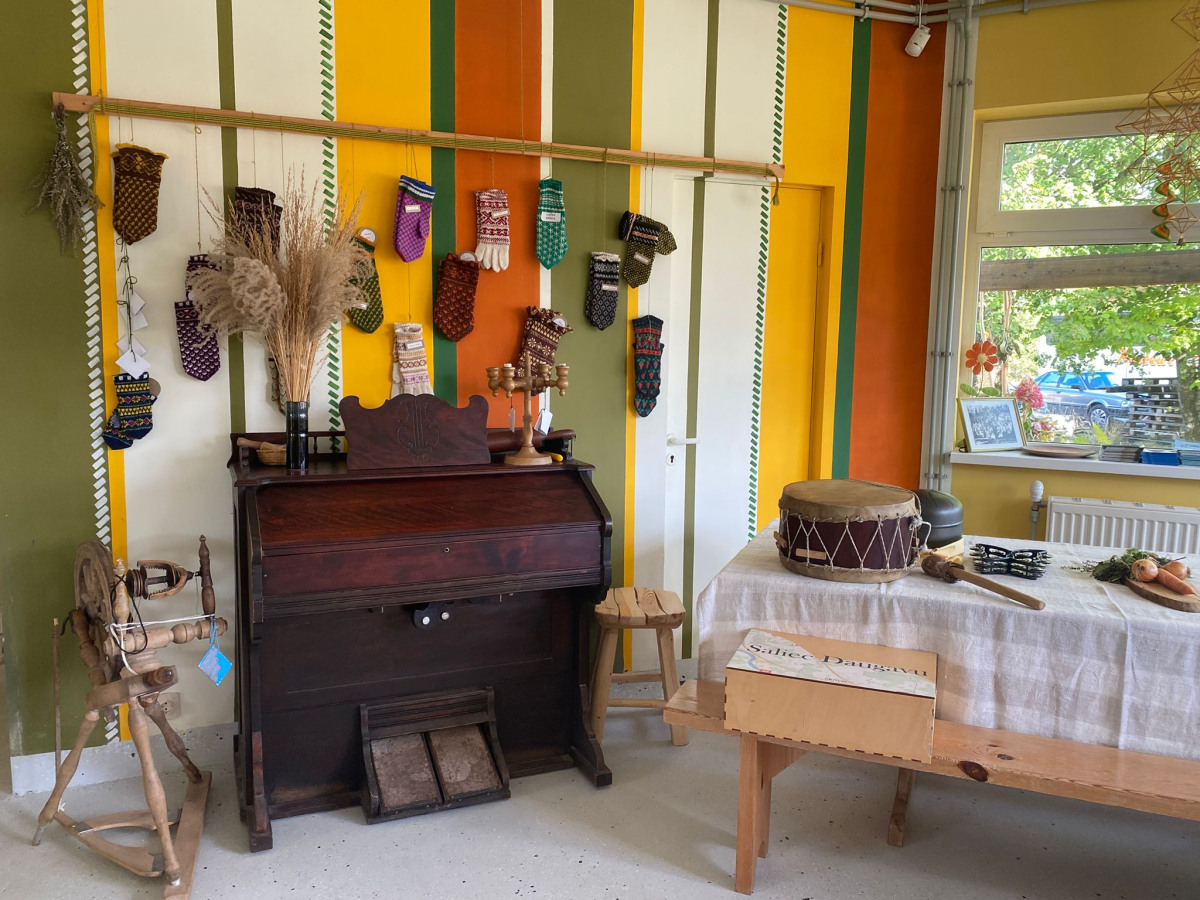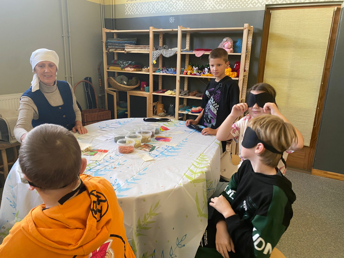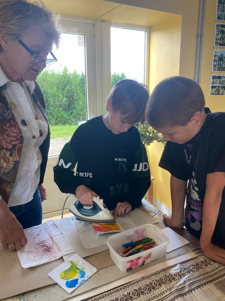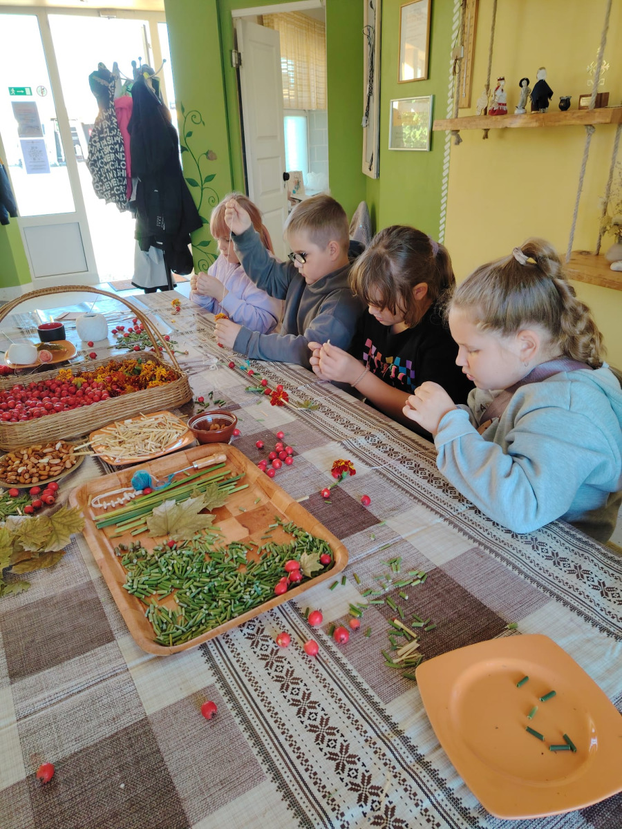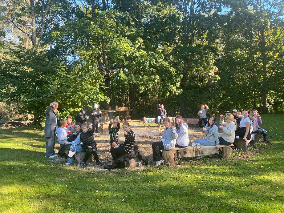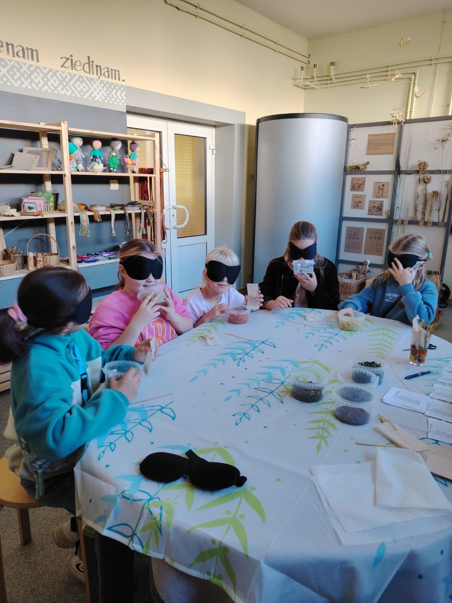 Pēc tam mēs devāmies uz biedrības “Baltaine” Radošu māju, kas aicināja piedalīties rotaļu, danču un spēļu programmās, amatnieku darbnīcās un kulinārā mantojuma meistarklasēs. Skolēni gan cepa pīrādziņus, gan veidoja savu augļu tēju, gan gleznoja ar gludekli, gan veidoja virtenītes no dabas veltēm. Programma bija ļoti plaša un skolēniem patika.