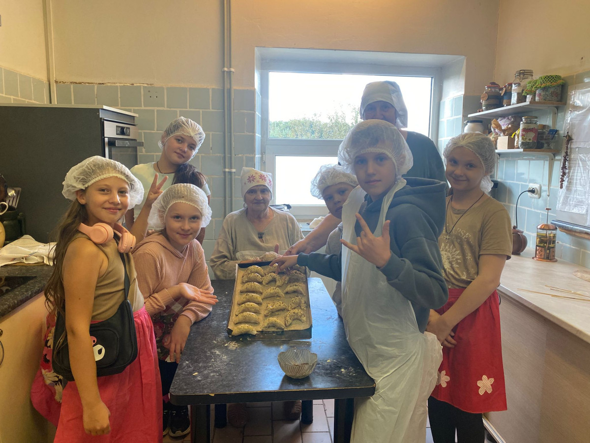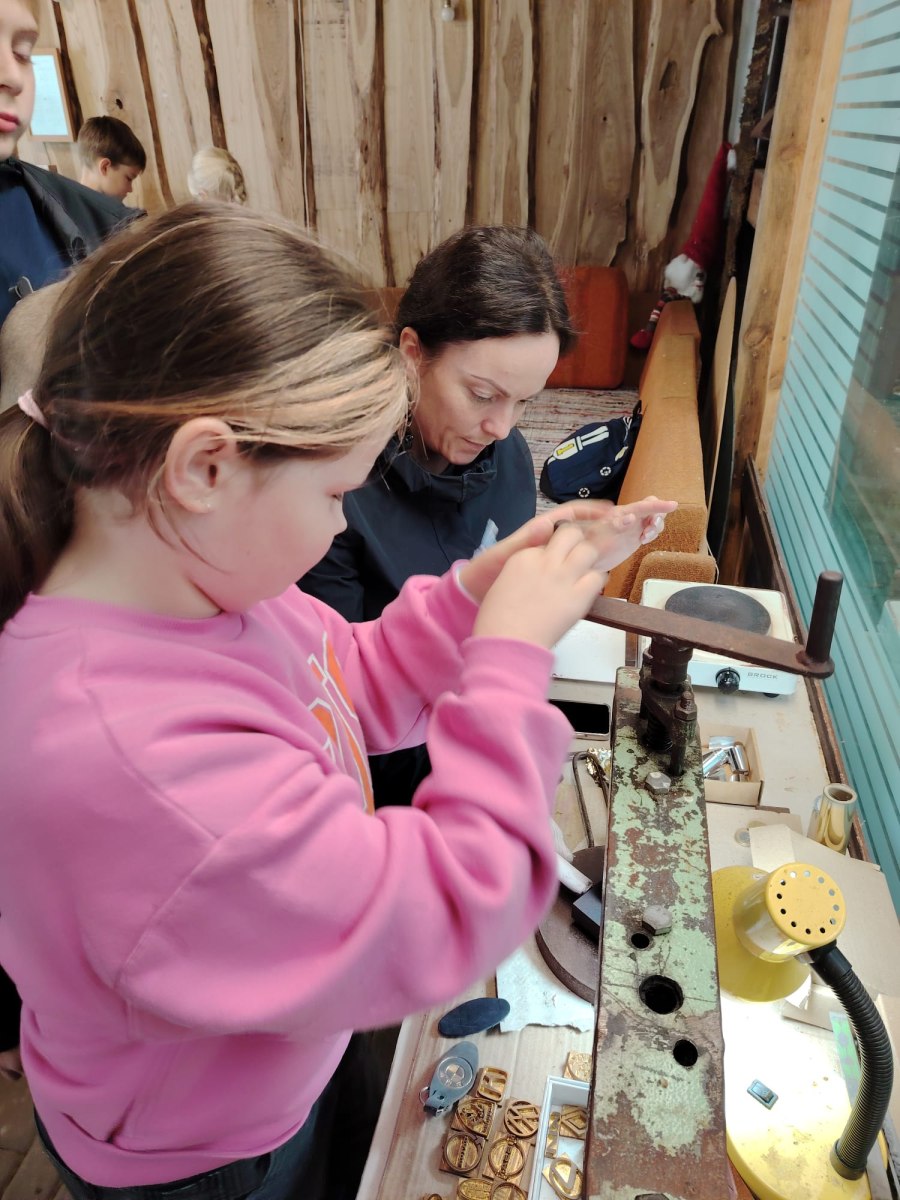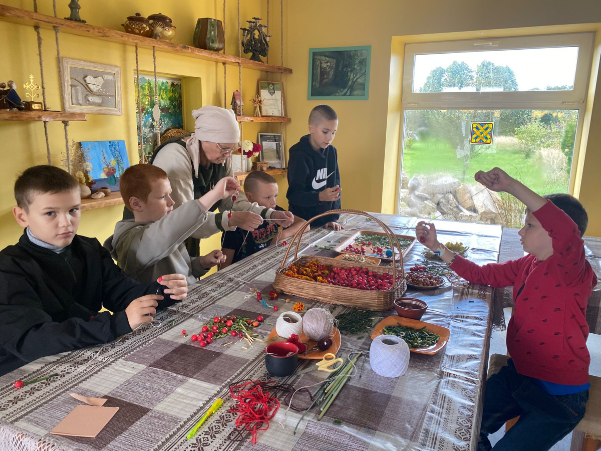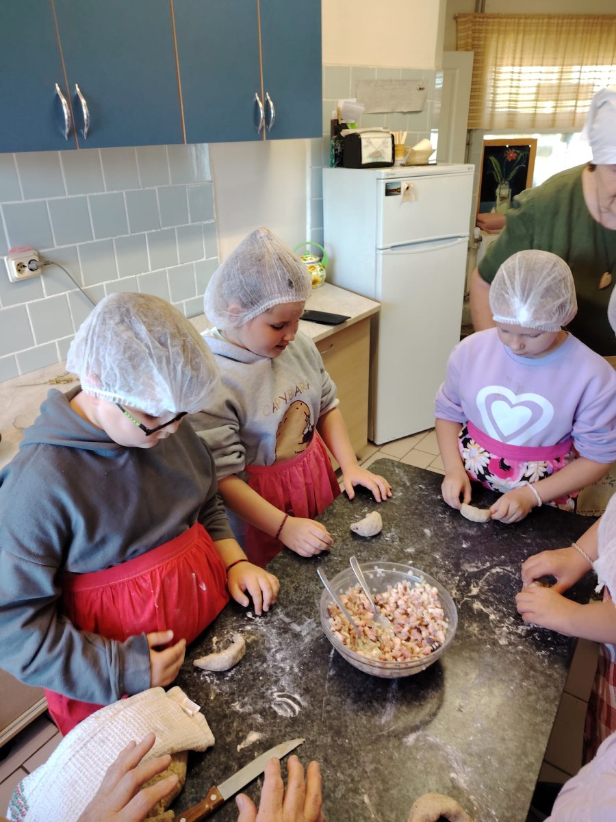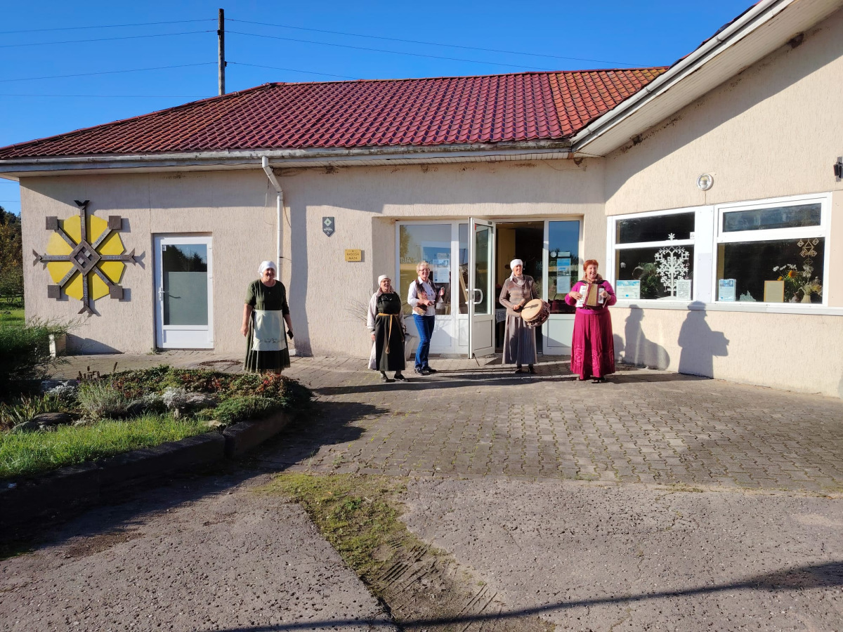 Pēc tam mēs devāmies uz biedrības “Baltaine” Radošu māju, kas aicināja piedalīties rotaļu, danču un spēļu programmās, amatnieku darbnīcās un kulinārā mantojuma meistarklasēs. Skolēni gan cepa pīrādziņus, gan veidoja savu augļu tēju, gan gleznoja ar gludekli, gan veidoja virtenītes no dabas veltēm. Programma bija ļoti plaša un skolēniem patika.
