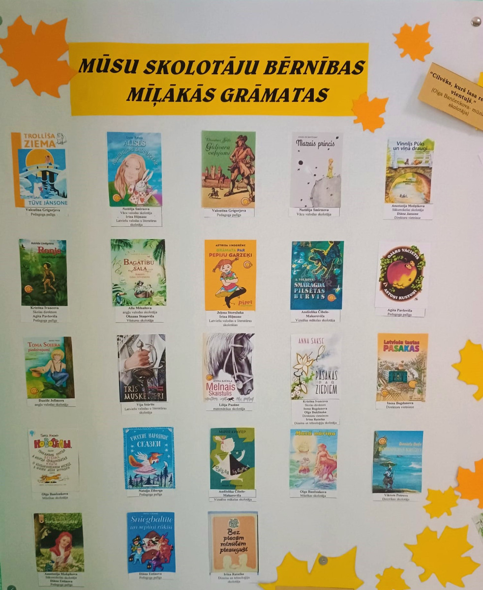 Skolotāju dienas ietvaros skolas bibliotekāres veica nelielu aptauju. Rezultātā tika sagatavotas sirsnīgas un iedvesmojošas izstādes, kas ļauj ieskatīties mūsu skolotāju bērnības pasaulē caur viņu mīļākajām grāmatām un literārajiem varoņiem.
