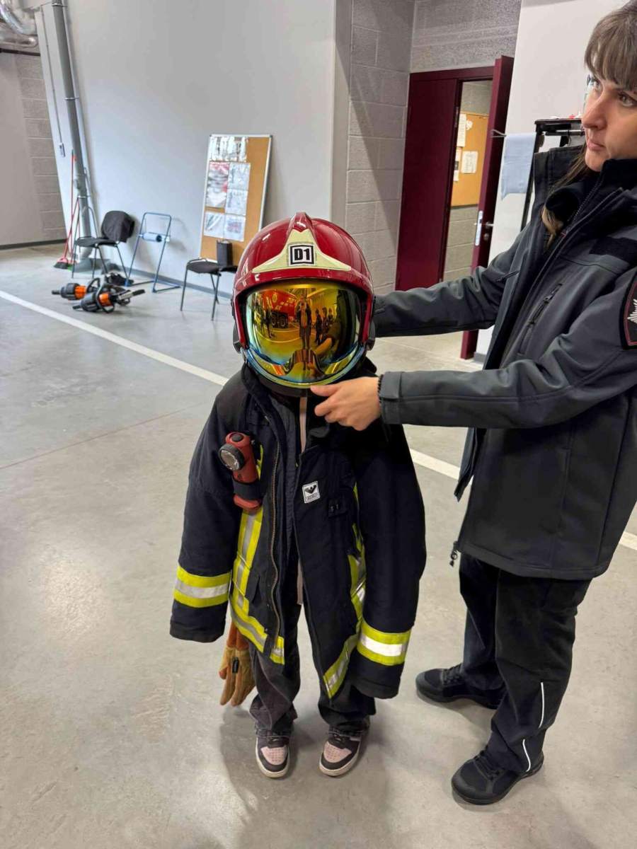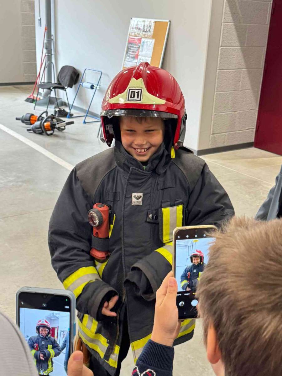 Ugunsdzēsības dienesta darbinieki parādīja skolēniem savu speciālo aprīkojumu: ugunsdzēsēju mašīna ir aprīkota ar vairākām dažādu diametru šļūtenēm, ar dažāda lieluma kāpnēm un ūdens mucu, kuras tilpums ir 3 tonnas. Audzēkņiem tika atļauts pielaikot formas tērpus un pat pasēdēt ugunsdzēsēju mašīnā. Bērni  uzzināja, ka glābējam ir jābūt atbildīgam, drošsirdīgam, fiziski izturīgam un jāprot ātri pieņemt lēmumus.