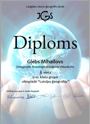 Apsveicam Gļebu un Kseniju ar lielisko sasniegumu un sakām lielu paldies visiem dalībniekiem par ieguldīto darbu un interesi par ģeogrāfiju! Lai šī pieredze iedvesmo turpmākiem panākumiem!