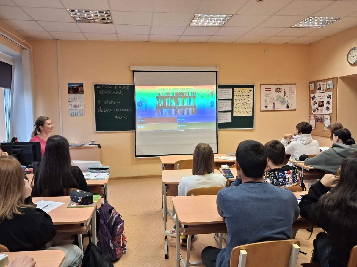15., 16. un 17. oktobrī skolā tika atzīmēta Valsts valodas diena. Bibliotekāres organizēja aizraujošu Kahoot viktorīnu, kurā skolēni pārbaudīja savas zināšanas par latviešu valodu, tās vēsturi, gramatiku un literatūru. Viktorīna raisīja lielu interesi un azartu, jo piedalīties varēja gan individuāli starpbrīžos un pēc stundām, gan arī sacensties savā starpā stundu laikā. Īpaši aizrautīgi bija 5.d, 6.d, 7.d, 7.e un 8.d klase.