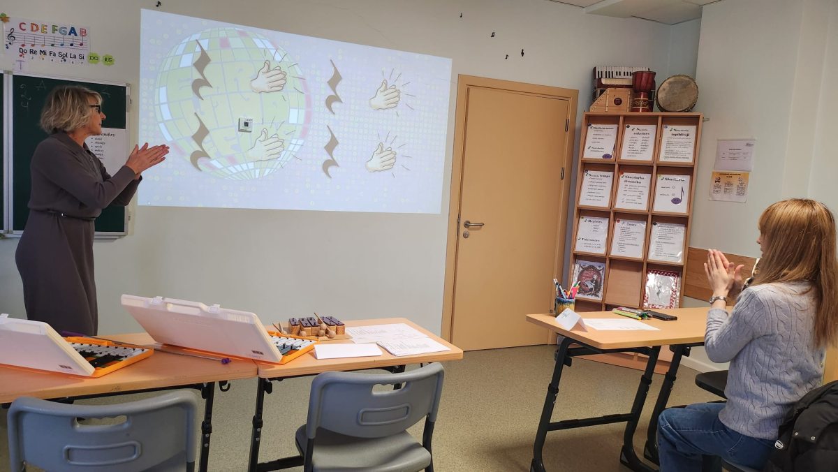 “Daudz laimes, Latvija!”. Stundas noslēgumā visi piedalījās interaktīvajā spēlē “Ritma rudens kaste”, kas piepildīja klasi ar smiekliem un jautrību.
