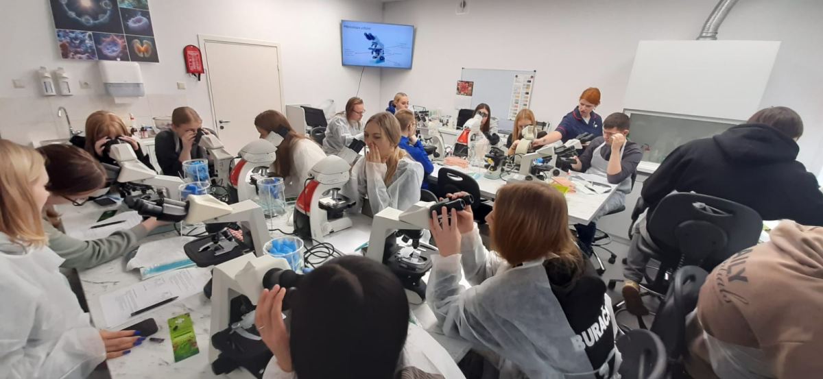 Projekta “STEM un pilsoniskās līdzdalības norises plašākai izglītības pieredzei un karjeras izvēlei” ietvaros 2025. gada 3.novembrī Daugavpils Draudzīgā aicinājuma vidusskolas 12.d klases skolēni kopā ar savu klases audzinātāju Innu Kolpakovu devās mācību ekskursijā uz Latvijas Universitātes P. Stradiņa medicīnas koledžu Jūrmalā, kur piedalījās nodarbībā “Mikroorganismi un to nozīme cilvēka organismā”.