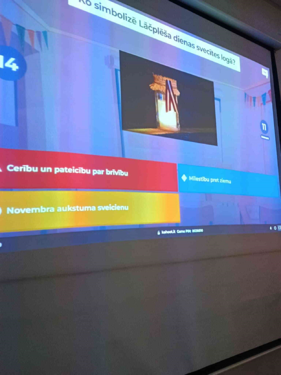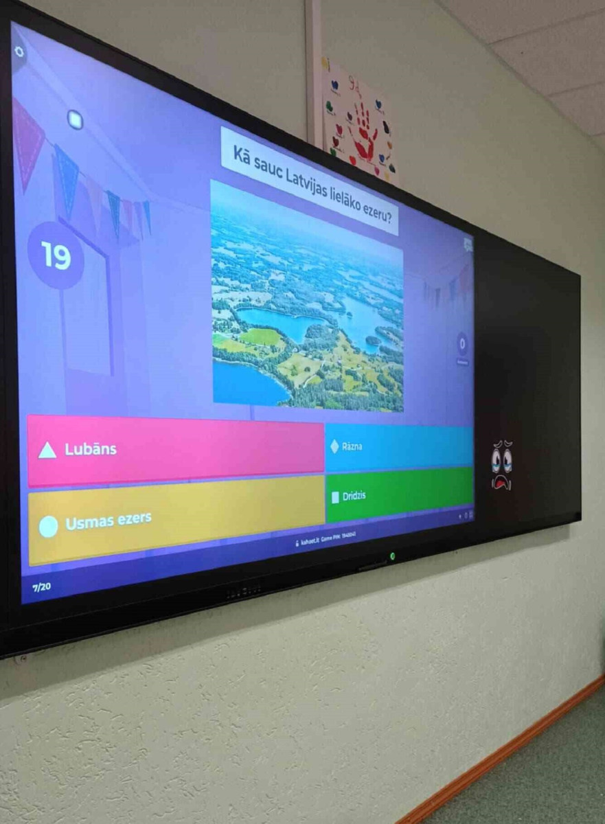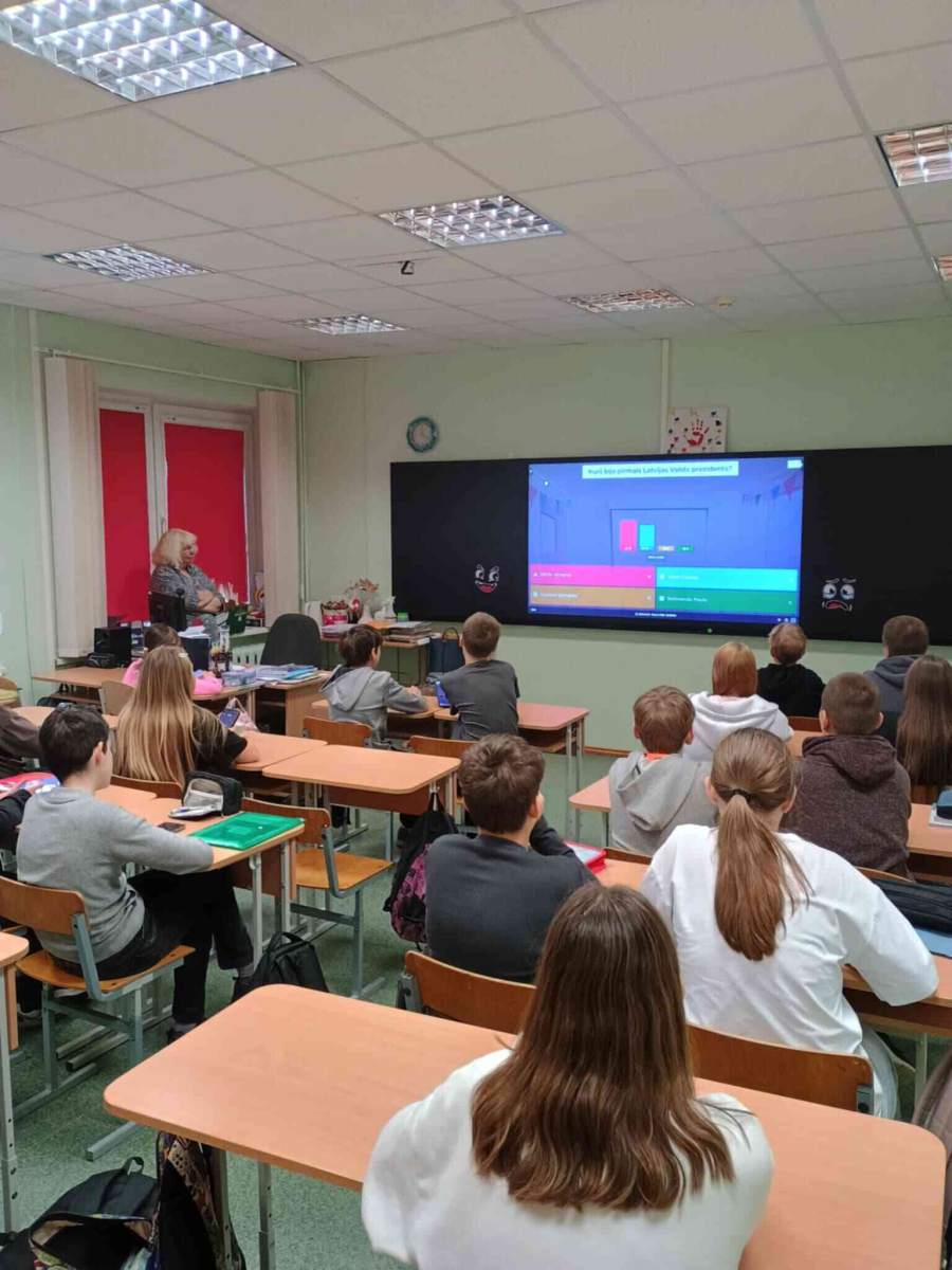 Stundas laikā skolēni piedalījās aizraujošā Kahoot viktorīnā “Ko tu zini par Latviju?”, kurā pārbaudīja savas zināšanas par Latvijas svētkiem, pilsētām, dabu, novadiem un vēsturiskiem notikumiem.