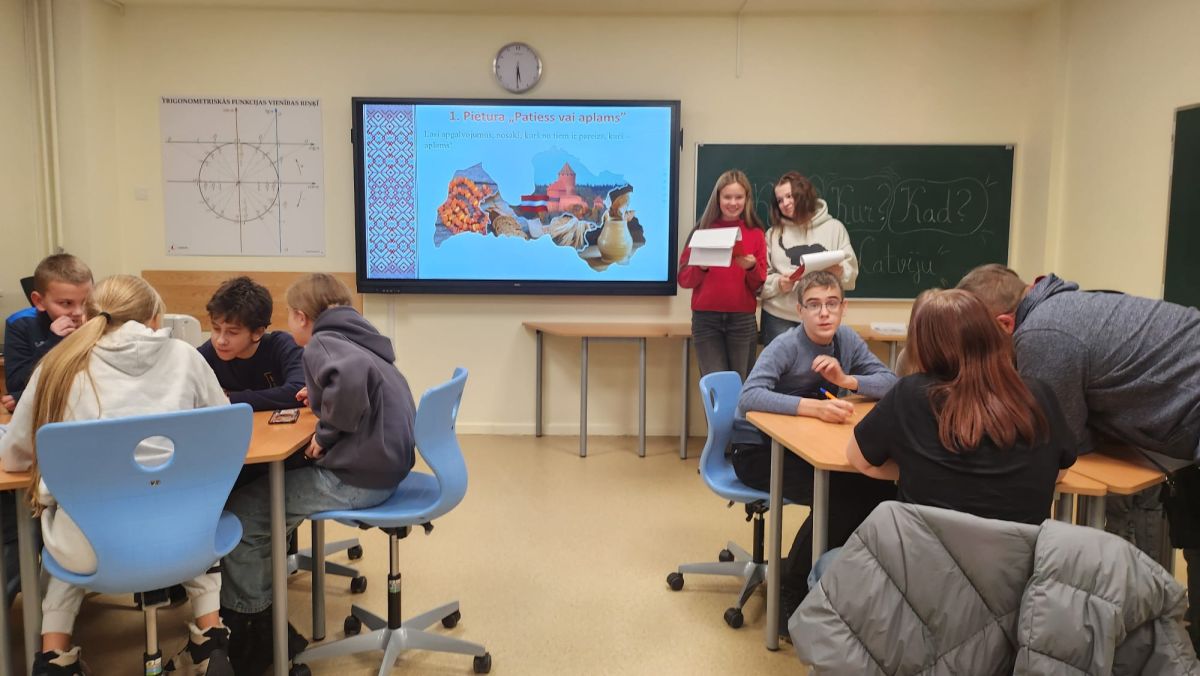 20. novembrī mūsu skolā norisinājās aizraujoša un zināšanām bagāta spēle “Kas? Kur? Kad? – Ceļojums pa Latviju”, kurā piedalījās 5.–7. klašu skolēni un viņu vecāki. Katra komanda sastāvēja no sešiem dalībniekiem. Spēli sagatavoja un vadīja aktīvākie skolēnu pašpārvaldes pārstāvji.