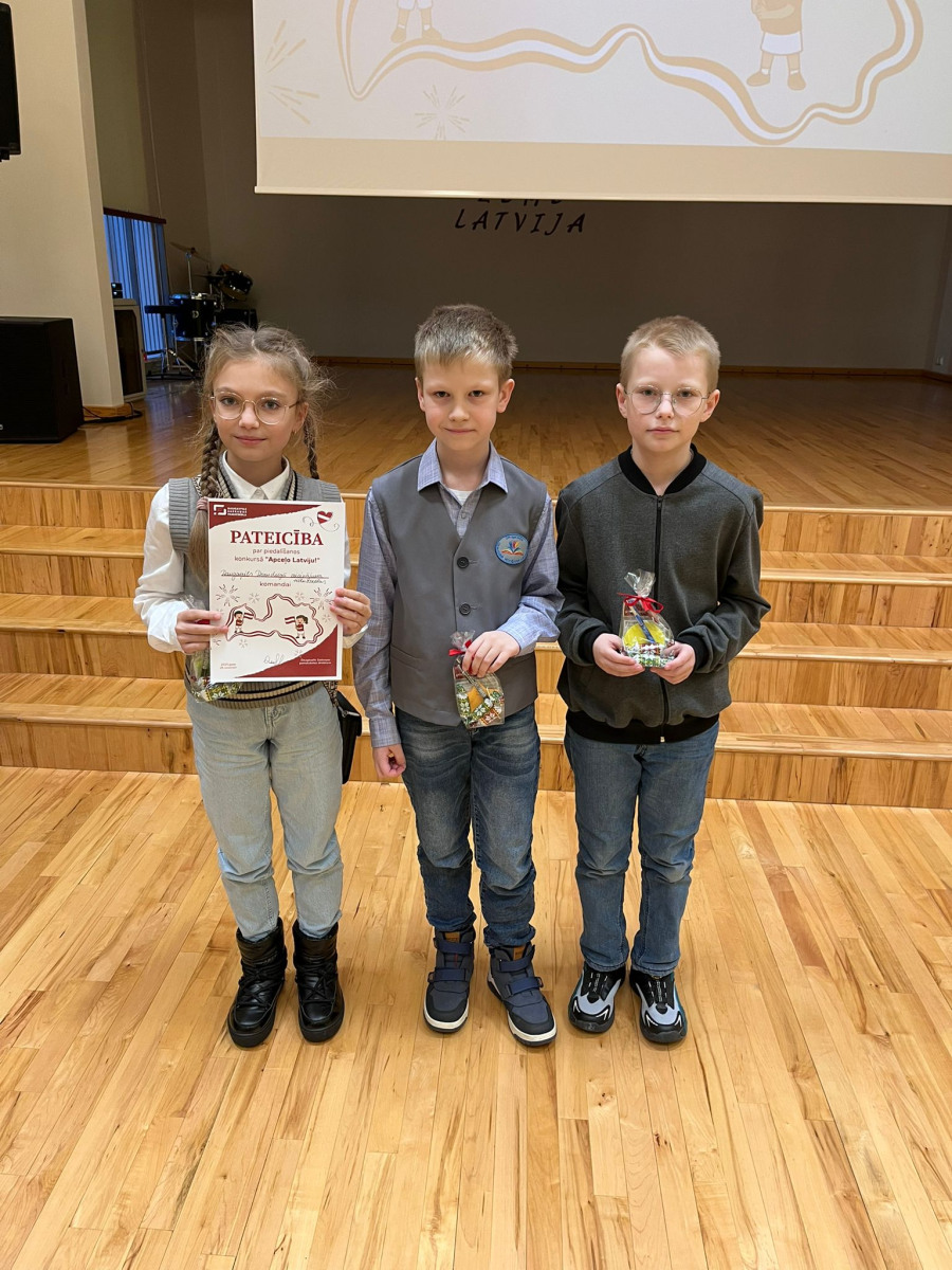 Spēlē piedalījās divas mūsu skolas komandas: Arina Čelnova (3.a), Emīlija Ignatjeva (3.b), Intars Zvīdris (3.b), Kirils Moisejevs (3.c), Dmitrijs Goršanovs (3.d) un Mihails Juhnevičs (3.d). Abas komandas saņēma pateicības rakstu par piedalīšanos konkursā. Pateicamies skolotājām par bērnu sagatavošanu.