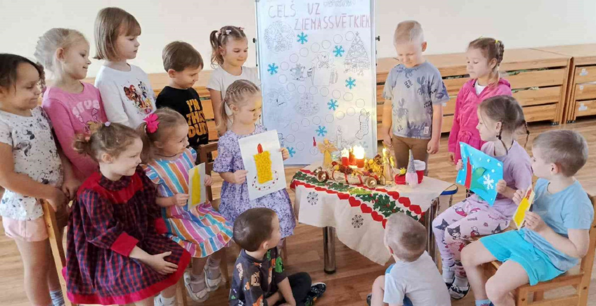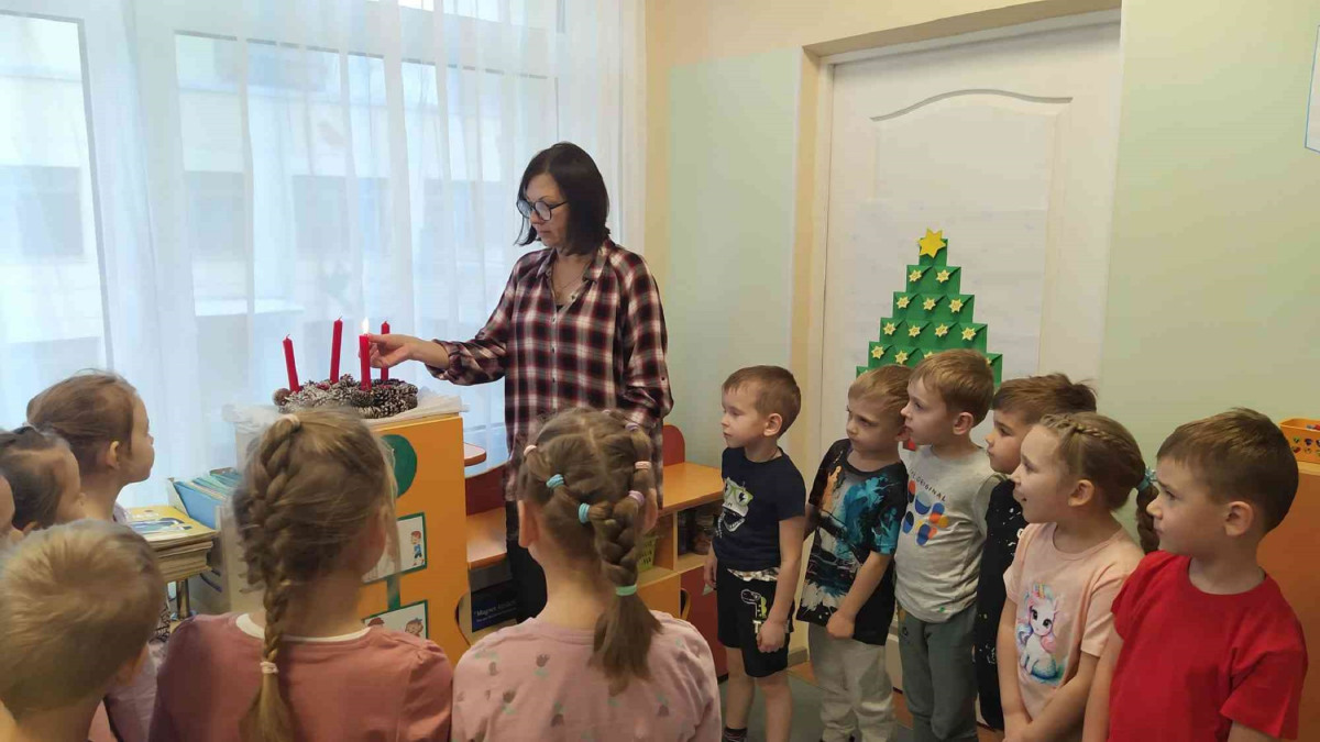 Šodien, 1. decembrī, Daugavpils Draudzīgā aicinājuma vidusskolas (Raipoles iela 8, Stāvā iela 41) pirmsskolas grupās tika iedegta pirmā adventes svecīte.