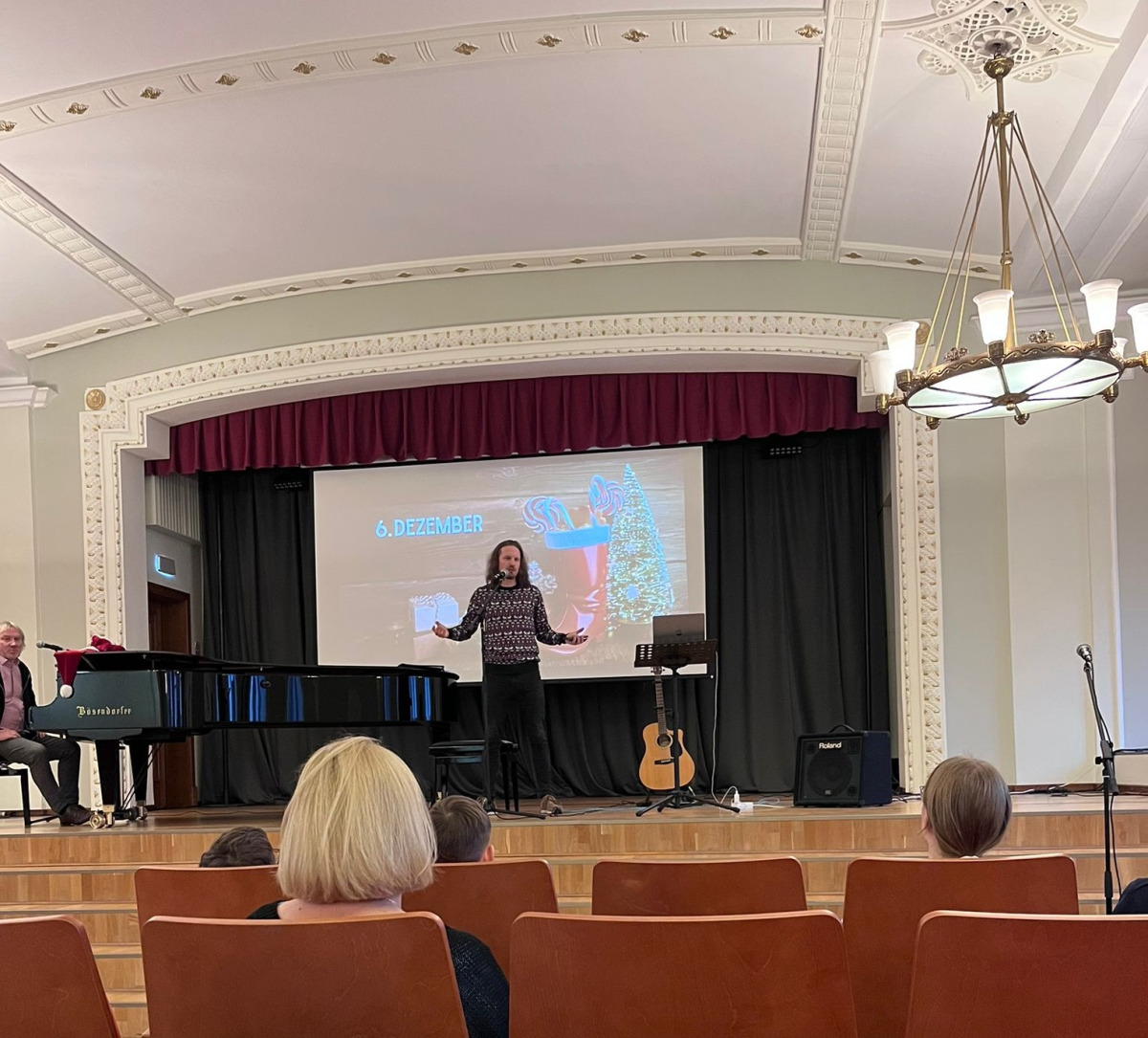 Pasākumā skolēni guva priekštatu par Vācijas Ziemassvētku tradīcijām un iepazina vācu Ziemassvētku dziesmas.