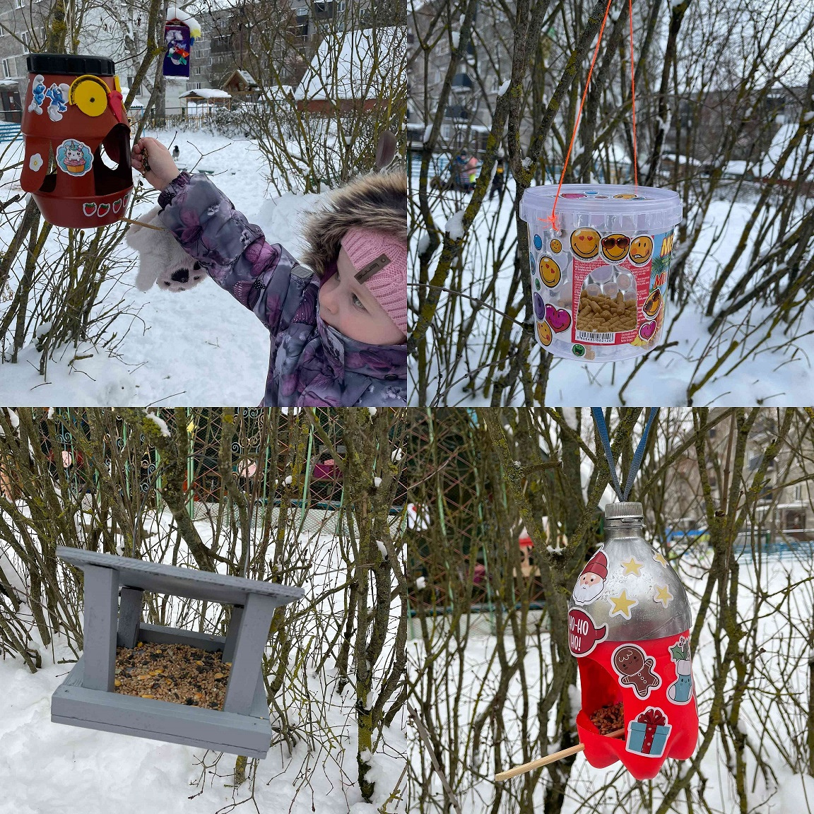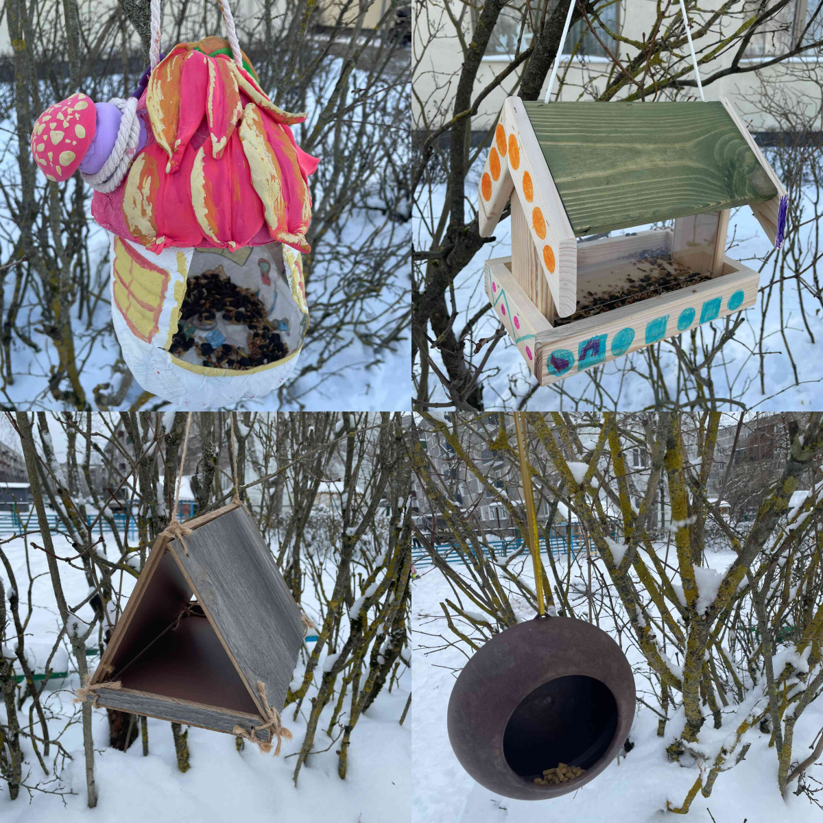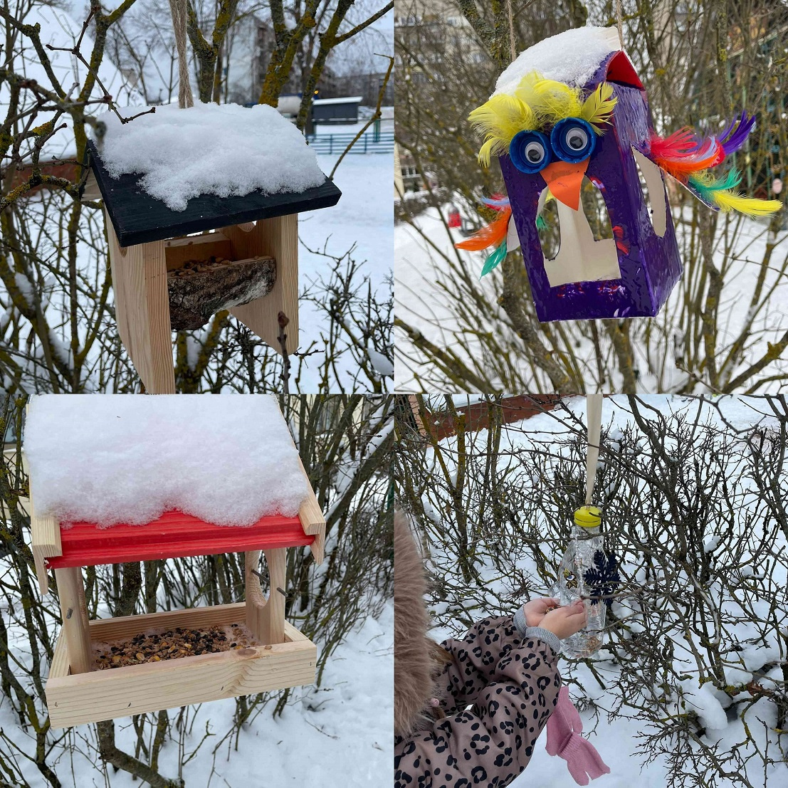 Vecāki kopā ar saviem bērniem mājās izveidoja putnu barotavas un būrīšus. Šis radošais darbs veicināja vērtīgu ģimenes kopā būšanu, sarunas par dabu, putniem un to vajadzībām. Kad barotavas bija gatavas, bērni ar skolotāju tās izvietoja iestādes teritorijā, aktīvi iesaistoties piemērotākās vietas izvēlē, palīdzot piestiprināt barotavas un pārrunājot, kāpēc putniem ir svarīgs miers, drošība un barība. Tagad ikdienas pastaigas ir kļuvušas par aizraujošu putnu vērošanas un rūpju brīdi. Bērni ar interesi novēro spārnotos viesus, pamana, kuri putni atlidojuši, priecājas par apmeklētām barotavām un dalās savos novērojumos ar draugiem un skolotājiem, vienlaikus mācoties būt pacietīgiem, uzmanīgiem un atbildīgiem pret dzīvo dabu.