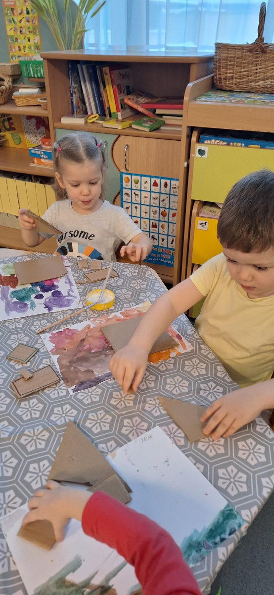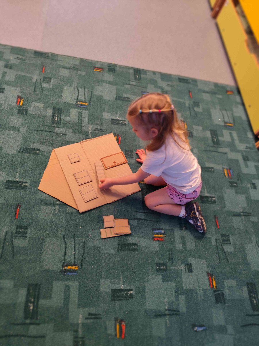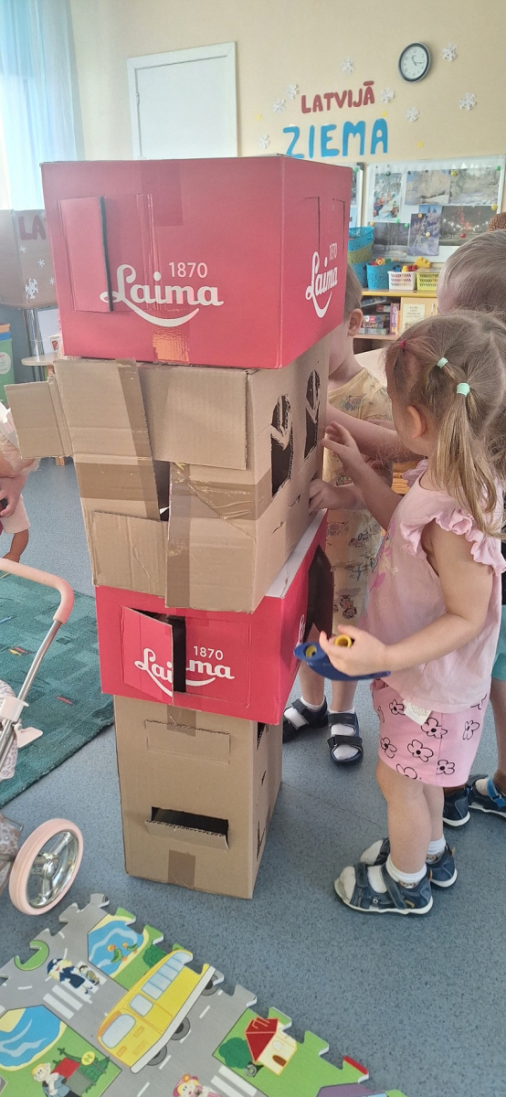 Janvārī temata «Būvējam» ietvaros Daugavpils Draudzīgā aicinājuma vidusskolas (Raipoles iela 8) grupas «Pūcītes» bērni, dažādās tehnikās darbojoties, iepazina būvju daudzveidību un papildināja savu vārdu krājumu. Bērni veidoja savu darbu izstādes un ikdienā izmantoja no kartona izveidotās mājas sižetu lomu rotaļās.