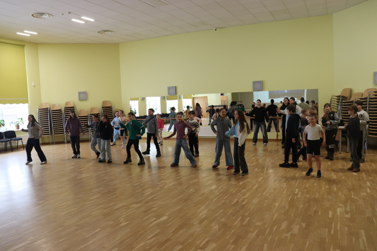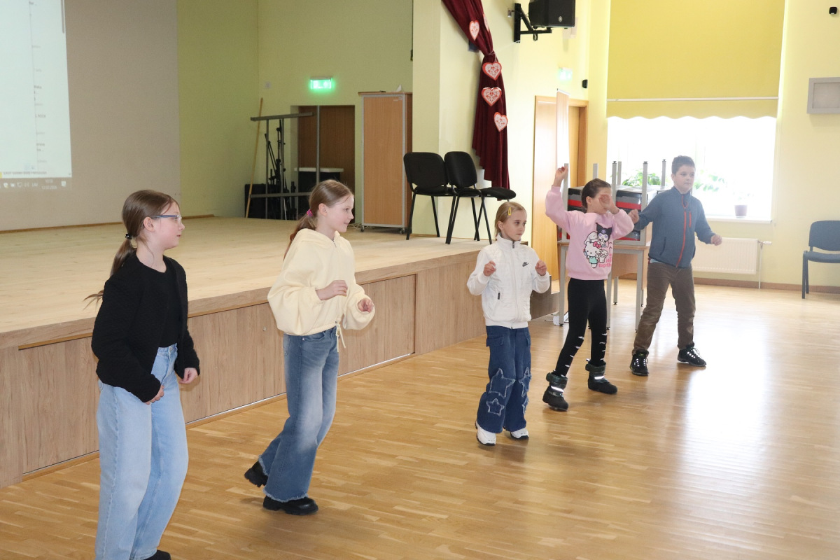 Skolas aktu zālē norisinājās kustību aktivitātes, kurās skolēni ar prieku piedalījās. Tās radīja priecīgu gaisotni un ļāva visiem kopā izkustēties un labi pavadīt laiku.