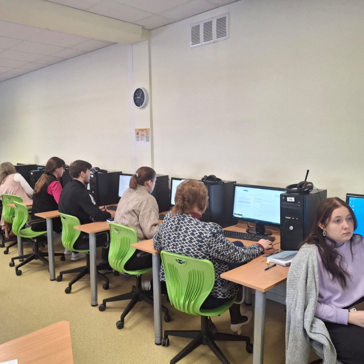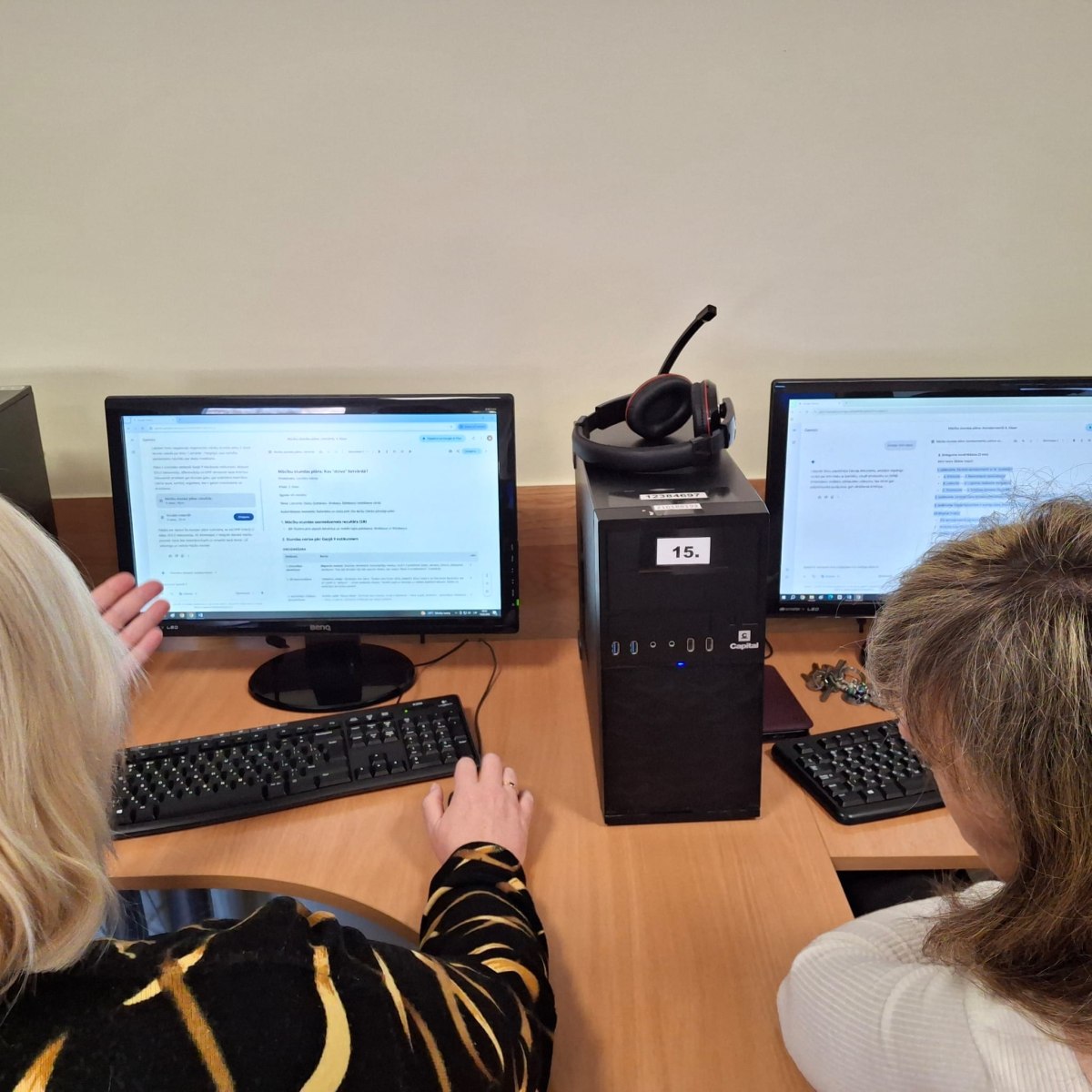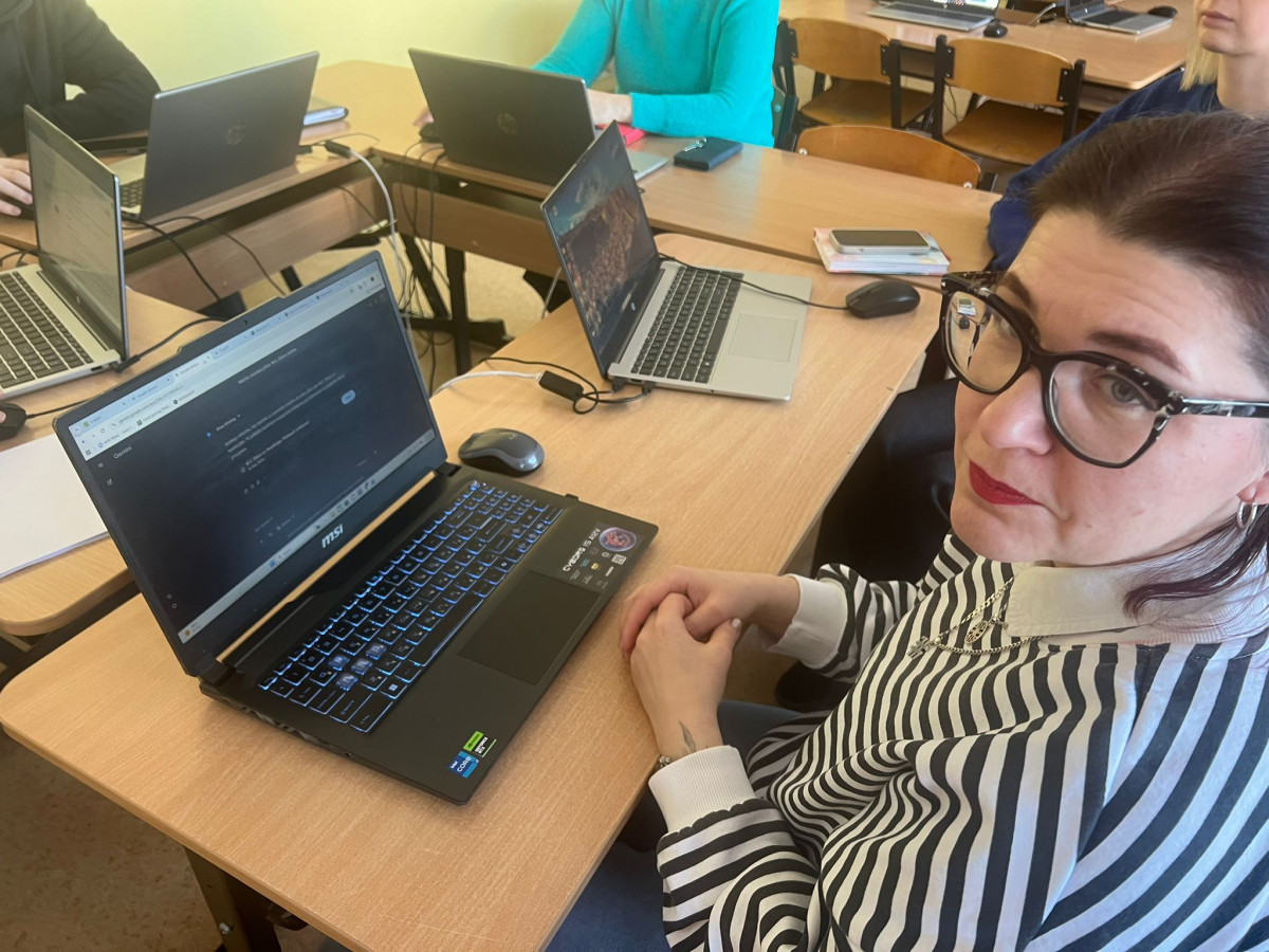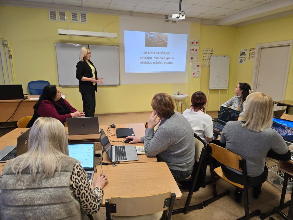 Mūsu pedagogu kolektīvs nomainīja lomas un sēdās solos, lai piedalītos praktiskajās nodarbībās “MI izmantošana, veidojot mūsdienīgu un efektīvu mācību stundu”: