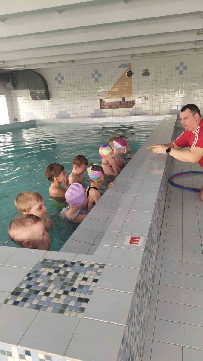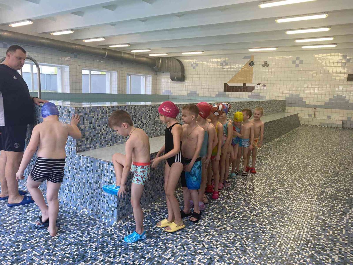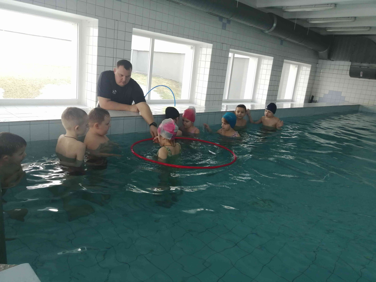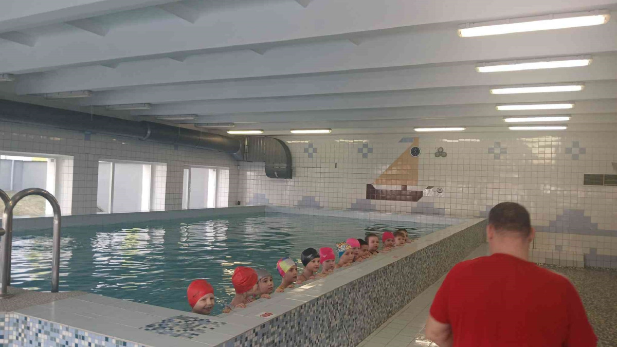 Pirms apmeklējuma skolotājas kopā ar bērniem pārrunāja drošības noteikumus, kas jāievēro baseinā un tā palīgtelpās. Arī skolas skolotājs Sergejs Kiseļovs, vadot pirmo peldēšanas nodarbību, pievērsa bērnu uzmanību noteikumu ievērošanai. Nodarbību laikā bērni iepazinās ar pirmajiem peldēšanas prasmju apguves soļiem: ieiešanu baseinā, pārvietošanos, pieturoties pie baseina malas, sejas pieradināšanu pie ūdens šļakatām, kā arī elpošanas vingrinājumiem (ieelpot virs ūdens un izelpot ūdenī, veidojot burbuļus). Bērni mācījās iemērkt ūdenī seju un vēlāk arī visu galvu, veica vienkāršas ķermeņa kustības ūdenī (piemēram, pagriešanos) un apguva drošu izkāpšanu no baseina. Pirmā peldēšanas nodarbība bērniem sagādāja daudz prieka un jaunu iespaidu.