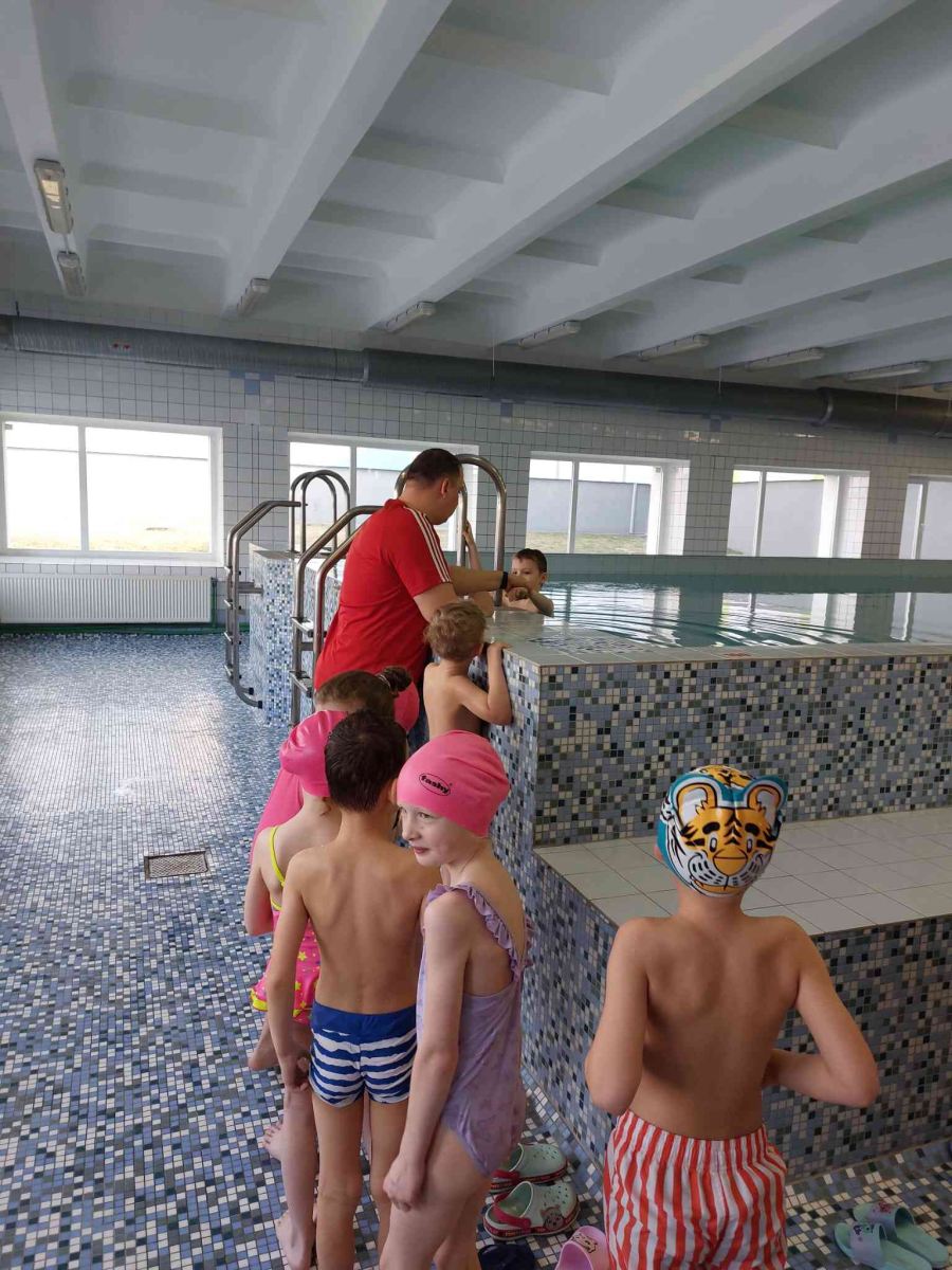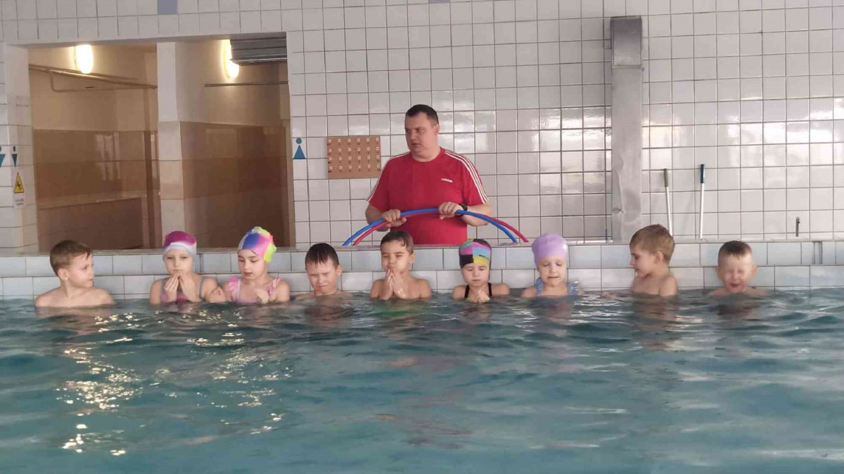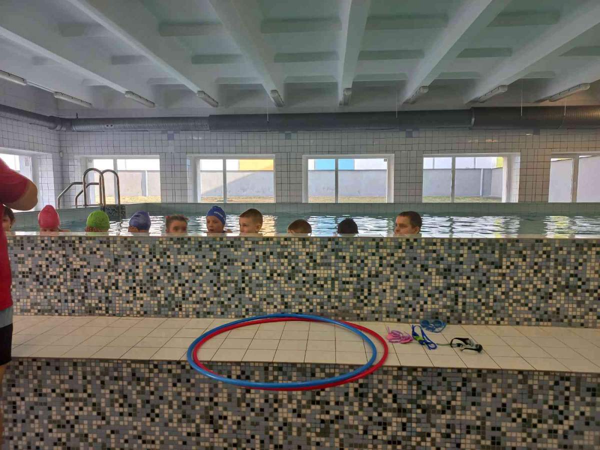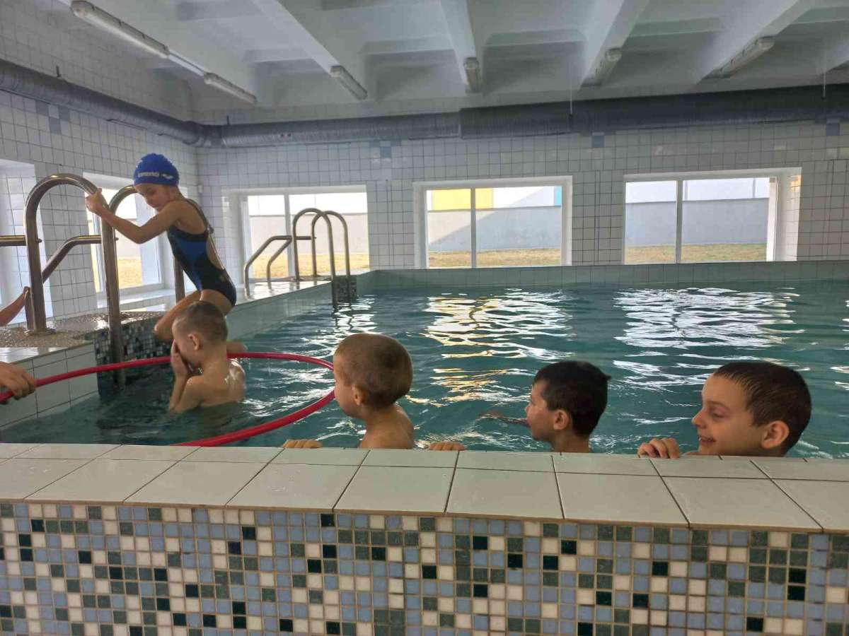 Pirms apmeklējuma skolotājas kopā ar bērniem pārrunāja drošības noteikumus, kas jāievēro baseinā un tā palīgtelpās. Arī skolas skolotājs Sergejs Kiseļovs, vadot pirmo peldēšanas nodarbību, pievērsa bērnu uzmanību noteikumu ievērošanai. Nodarbību laikā bērni iepazinās ar pirmajiem peldēšanas prasmju apguves soļiem: ieiešanu baseinā, pārvietošanos, pieturoties pie baseina malas, sejas pieradināšanu pie ūdens šļakatām, kā arī elpošanas vingrinājumiem (ieelpot virs ūdens un izelpot ūdenī, veidojot burbuļus). Bērni mācījās iemērkt ūdenī seju un vēlāk arī visu galvu, veica vienkāršas ķermeņa kustības ūdenī (piemēram, pagriešanos) un apguva drošu izkāpšanu no baseina. Pirmā peldēšanas nodarbība bērniem sagādāja daudz prieka un jaunu iespaidu.