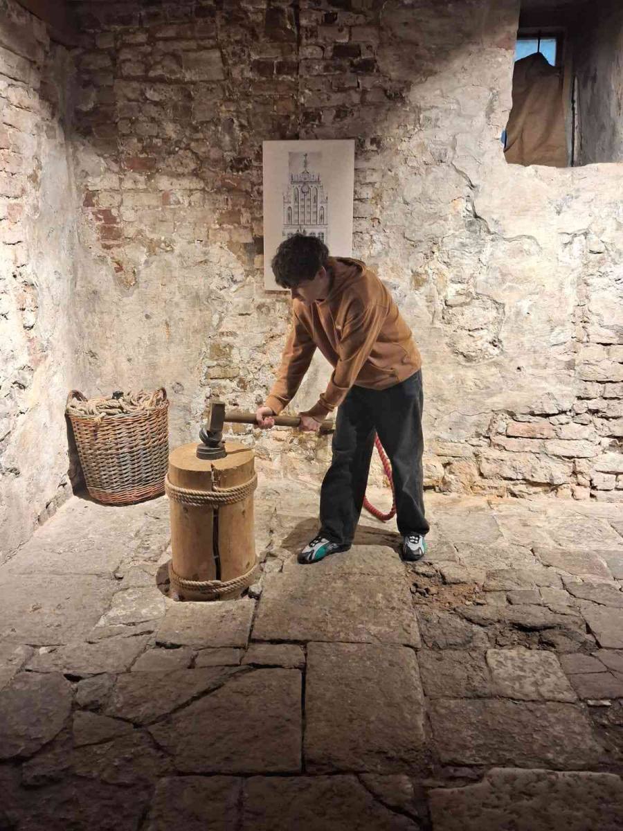 Skolēni uzzināja, ka celtnes nosaukums radies no tās īpašniekiem Melngalvju brālības, kuras galvenais simbols bija svētais Maurīcijs, pirmais melnais kristietis, kareivju un neprecētu vīriešu aizgādnis. Viņš redzams nama ģerbonī un ir attēlots pie tā ieejas. Apmeklējuma laikā bija iespēja izstaigāt 14. gadsimta vēsturiskos pagrabus, kur izkala savu Melngalvju biedra laimes un veiksmes monētu. Skolēni iepazinās ar iespaidīgo sudraba kolekciju un apskatīja svinību zāles. Ekskursijas laikā skolēni guva ieskatu Rīgas un Melngalvju nama vēsturē.