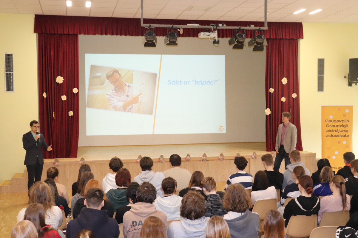 Šī gada 31.martā Daugavpils Draudzīgā aicinājuma vidusskolā viesojās studenti Rolands Indričāns no Rīgas Stradiņa universitātes un Mikus Lembergs no Latvijas Universitātes.