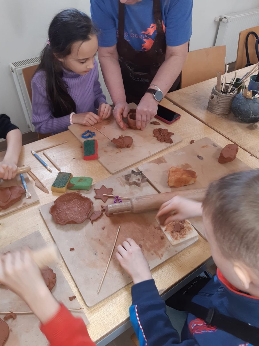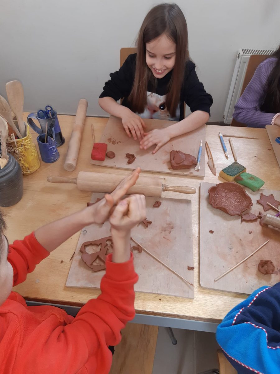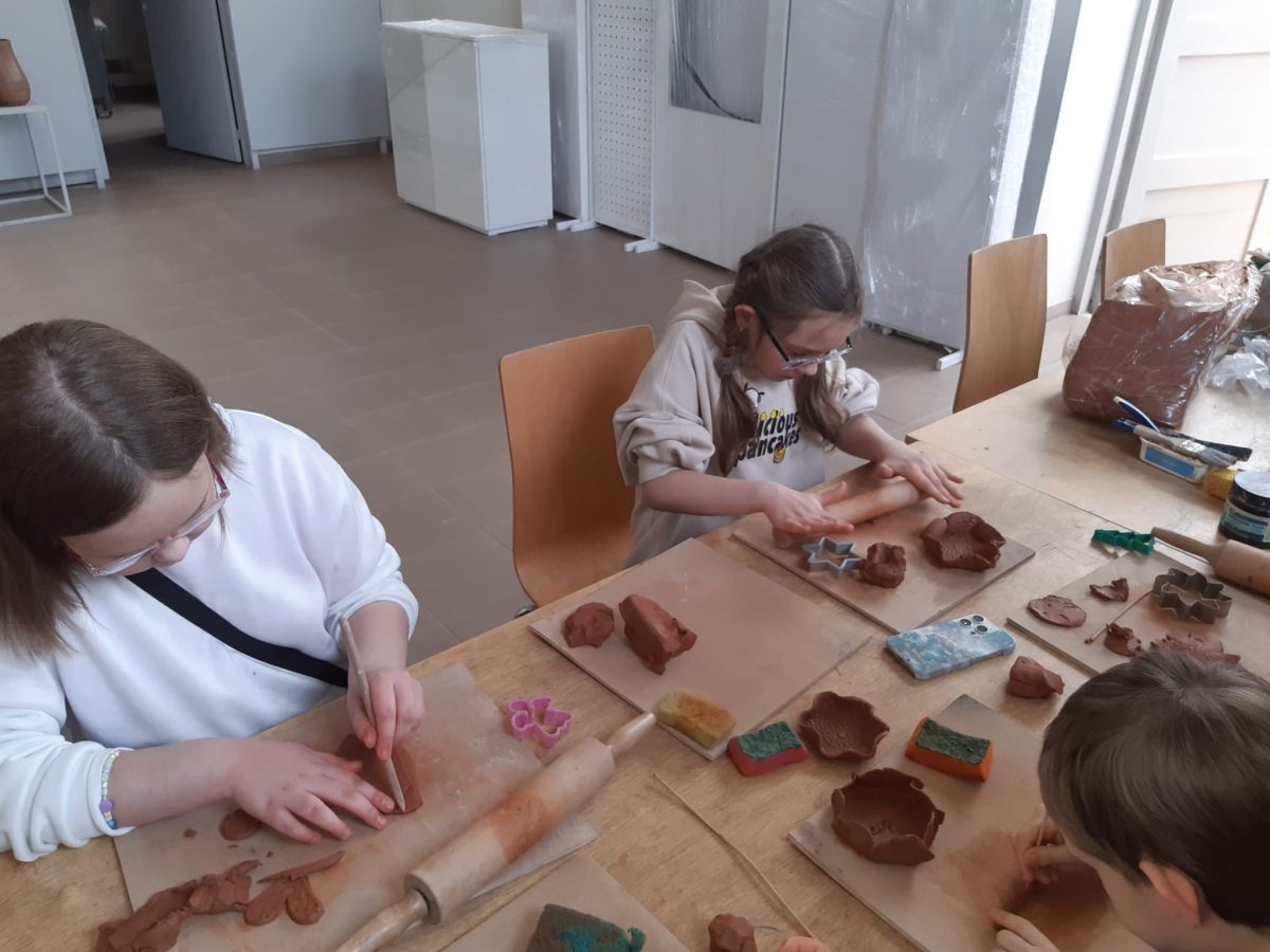 Bērni ar interesi apskatīja meistaru darbus izstāžu galerijā – dažādas krāsas māla traukus un skulptūras. Centra vadītāja Lilija Zeiļa piedāvāja skolēniem iesaistīties radošajā darba procesā un pārbaudīt savas spējas darbā ar mālu, izdomāt un realizēt savas idejas. Keramiķu darbnīcā skolēnus gaidīja mūsdienīgi aprīkotas darba vietas ar mālu. Īstenojot savas idejas radošā darbībā, skolēni varēja iejusties īstu māla meistaru lomā. Vadītāja parādīja skolēniem vienkāršus paņēmienus keramikas darbu radīšanā. Viņi ar prieku veidoja no māla dažādus priekšmetus, izmantoja savā darbā dažādus piederumus – koka kociņus, māla veltņus, mežģīņu salvetes, metāla formas. Skolēniem bija prieks redzēt, kā no vienkārša māla gabala var tapt dažādi brīnišķīgi darbi. Visi skolēnu darbi devās uz žāvēšanas kameru, un tagad mēs ar nepacietību gaidām, kad visi darbiņi būs gatavi, lai iepriecinātu ar tiem savus tuviniekus.