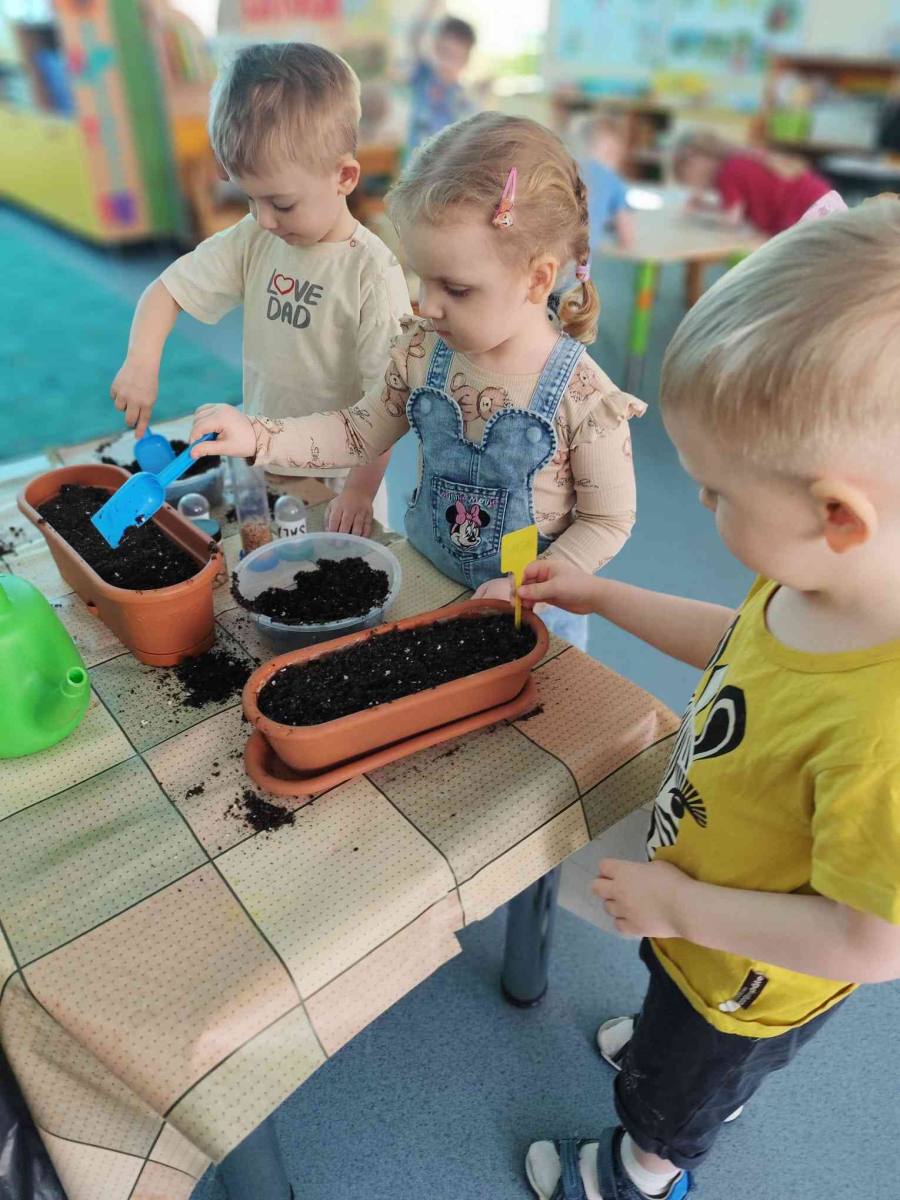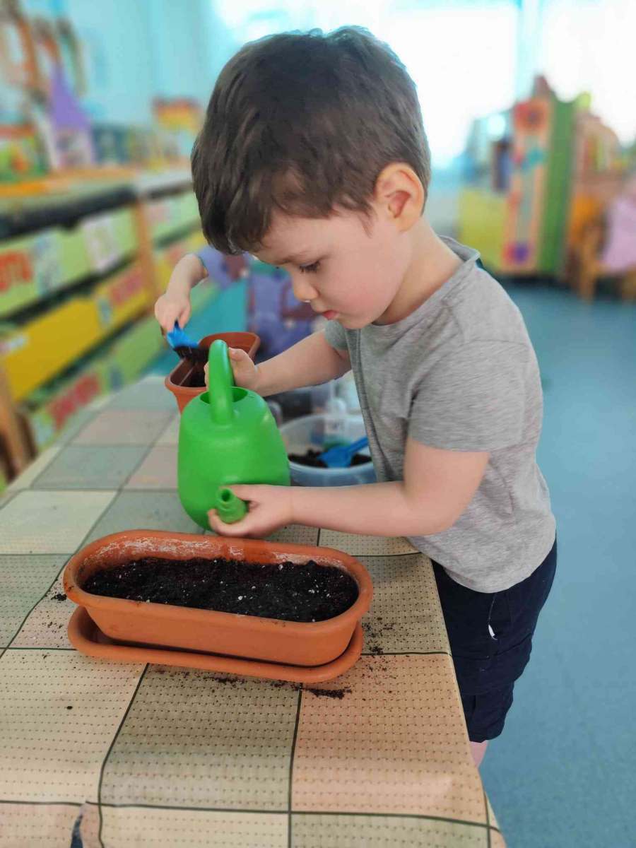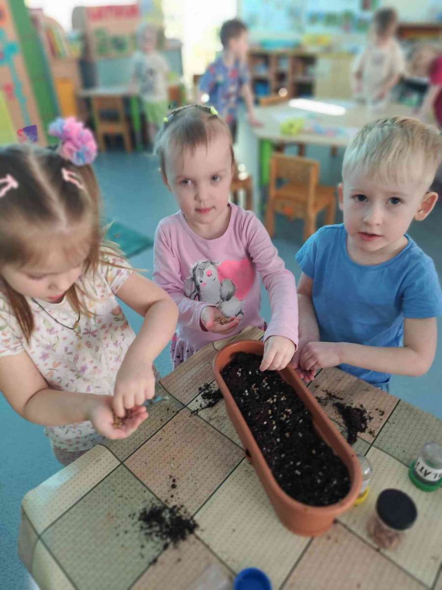 Darba sākumā bērni kopīgi pārrunāja, kas augiem ir nepieciešams, lai tie varētu augt un attīstīties. Tika secināts, ka augiem vajadzīga zeme, ūdens, gaisma un siltums. Pēc tam katrs bērns iestādīja savu sēklu podiņā, rūpīgi to aplaistīja un novietoja gaišā vietā.
