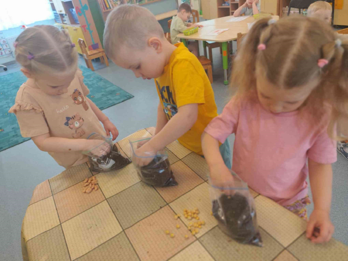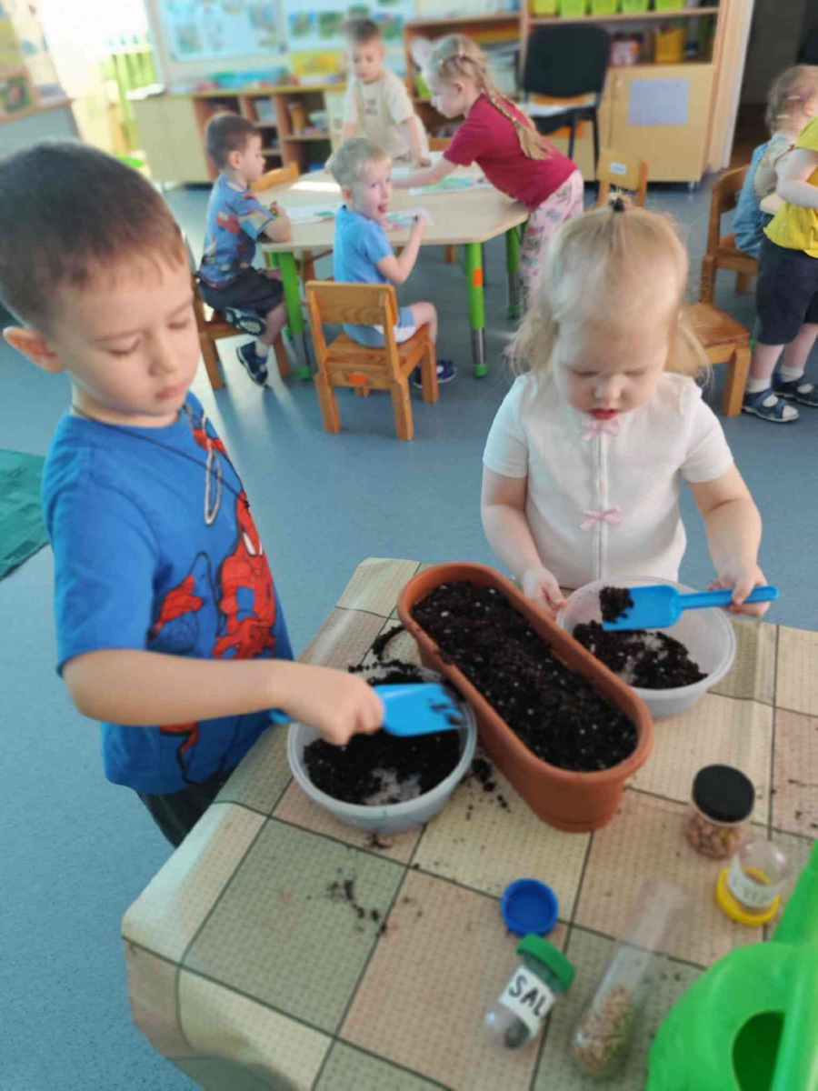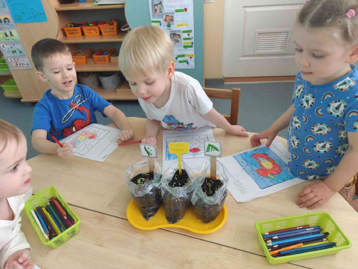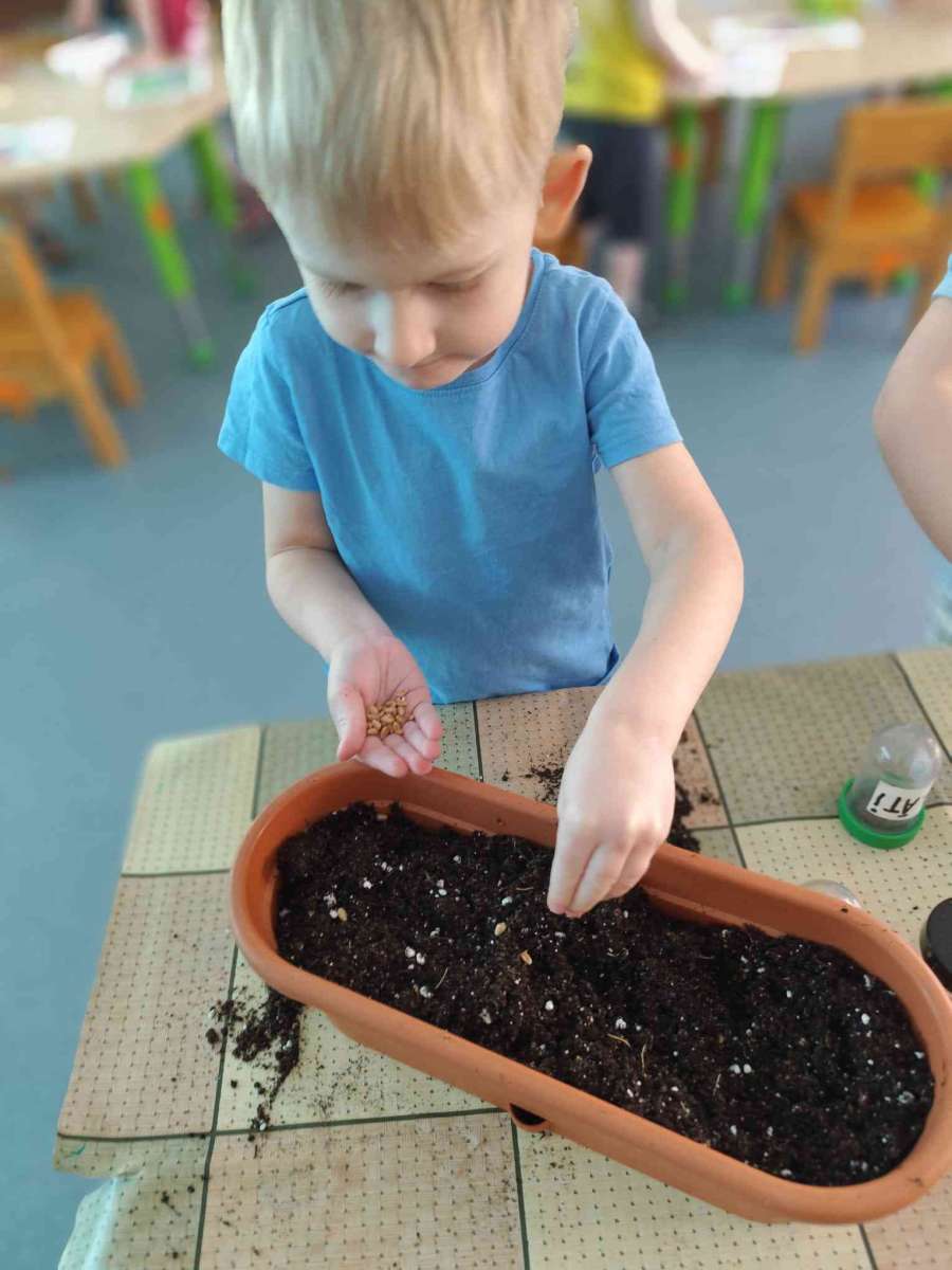 Darba sākumā bērni kopīgi pārrunāja, kas augiem ir nepieciešams, lai tie varētu augt un attīstīties. Tika secināts, ka augiem vajadzīga zeme, ūdens, gaisma un siltums. Pēc tam katrs bērns iestādīja savu sēklu podiņā, rūpīgi to aplaistīja un novietoja gaišā vietā.