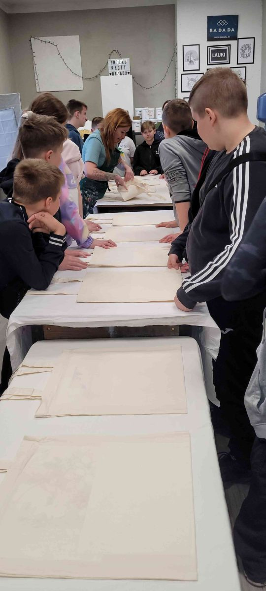 Meistarklases laikā skolēni guva ieskatu studijas darbā un uzzināja, kā top iecienītie RADADA apģērbi. Skolēni tika iepazīstināti ar sietspiedes tehniku un soli pa solim izprata, kā tiek radīts dizains uz apģērba. Nodarbība sniedza iespēju tuvāk iepazīt Latvijas kultūras mantojumu un uzzināt, kā tradicionālie raksti, tautas tērpu elementi, simboli, mitoloģiski tēli, pasakas un Latvijas ainavas var kļūt par iedvesmas avotu laikmetīgam apģērba dizainam. Vislielāko prieku skolēniem sagādāja praktiskā darbošanās – katrs izmēģināja sietspiedes tehniku un izveidoja apdruku uz auduma maisiņa. Gatavos maisiņus skolēni ar prieku paturēja sev. Katrs darbs bija unikāls, jo tas tapa pašu skolēnu rokām.