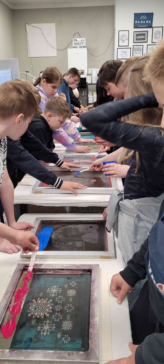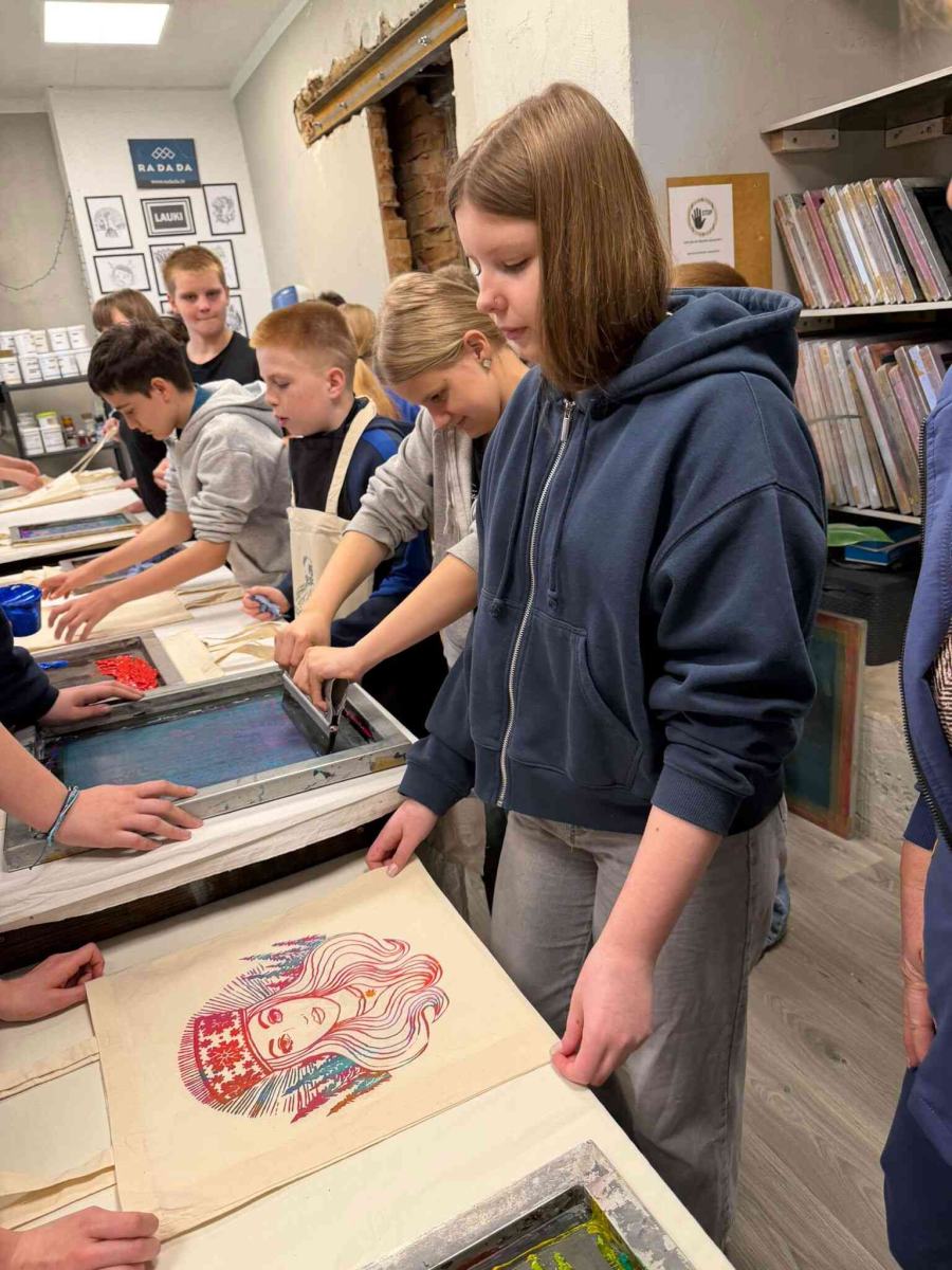 Šī gada 21. aprīlī programmas “Latvijas skolas soma” ietvaros Daugavpils Draudzīgā aicinājuma vidusskolas 6.a un 6.c klases skolēni devās mācību ekskursijā uz Skrīveriem, kur piedalījās izzinošā nodarbībā “Laikmetīgais tekstildizains RADADA sietspiedes darbnīcā”. Pasākuma mērķis bija iepazīstināt skolēnus ar dizaina tapšanas procesu un sniegt iespēju pašiem izmēģināt sietspiedes tehniku.