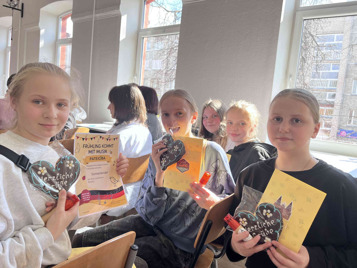 Šī gada 27. aprīlī vācu valodas mēneša ietvaros Daugavpils Valstspilsētas vidusskolā noritēja vācu valodas festivāls “Frühling kommt mit Musik”, kurā piedalījās arī mūsu skolas 5.a klases skolnieces: A.Hmeļņika, S.Kerubina, B.Potalujeva, I.Puncule, M.Siņica.