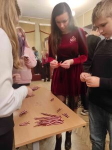 Sarkanbaltsarkanā lentīte ir neatņemama valsts svētku tradīcija. Šī gada 8. novembrī 5.a un 6.a klases skolēni kopā ar klases audzinātāju piedalījās sarkanbaltsarkano lentīšu locīšanas akcijā, kura notika Daugavpils Novadpētniecības un mākslas muzejā.