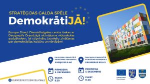 Kas ir demokrātiska valsts? Kādi ir tās pamati un principi? Uz šiem un daudziem citiem jautājumiem mums bija iespēja saņemt atbildes, spēlējot interaktīvo spēli «DemokrātiJĀ!». Tās mērķis ir izveidot savu valsti, sarindojot valsts vērtības un prioritātes svarīguma secībā. Mēs kopā ar Europe Direct Dienvidlatgale centra vadītāju Oskaru Zuģicki diskutējam par demokrātijas atšķirībām un līdzībām dažādās valstīs un Latvijā, pilnveidojām savas zināšanas par demokrātijas kultūru. Spēlē nebija pareizo un nepareizo atbilžu, kā arī uzvarētāju un zaudētāju, mēs klausījāmies cits cita viedokļus un secinājām, ka demokrātija ir valsts pamats, tas ir modelis, kura visnozīmīgākā daļa esam mēs.