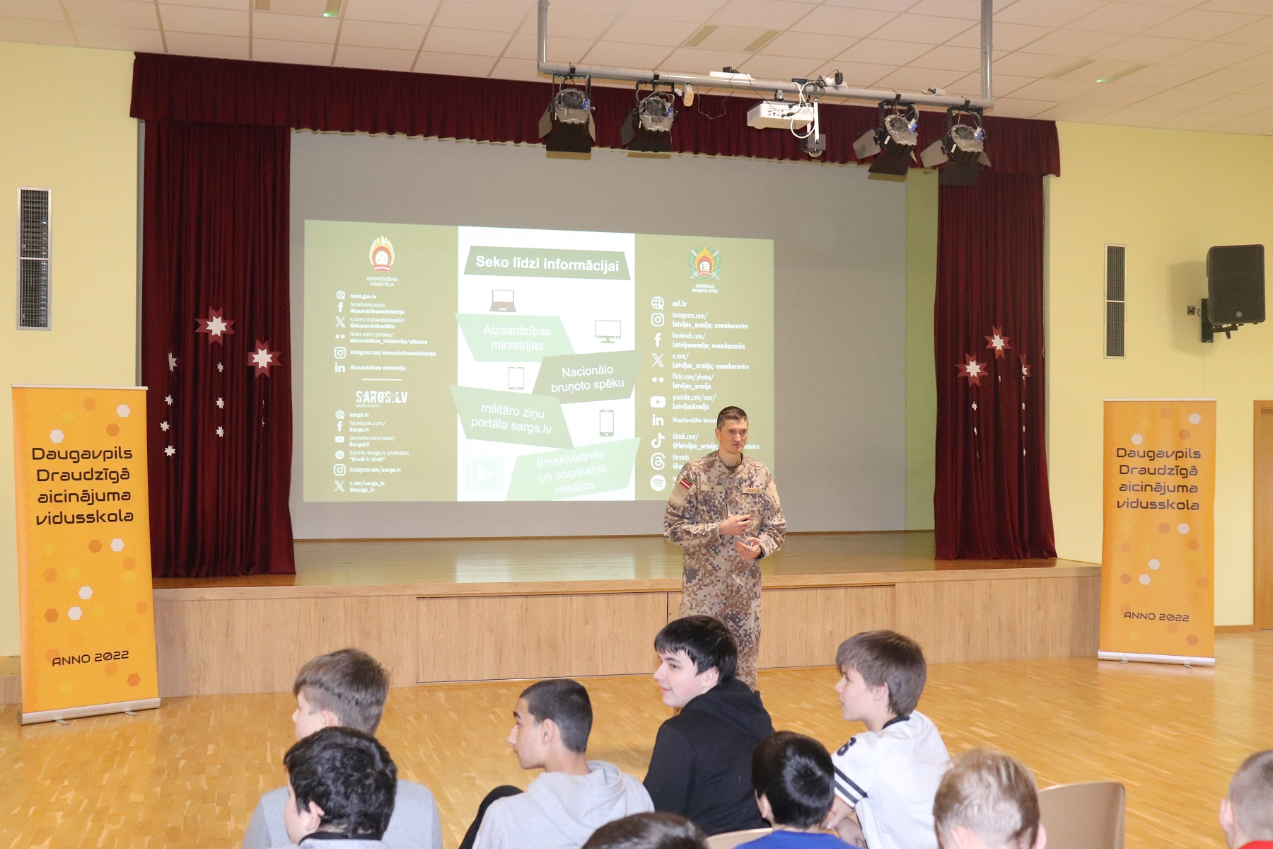 Š.g. 25. novembrī Daugavpils Draudzīgā aicinājuma vidusskolas 10.-11. kl. skolēni piedalījās informatīvā lekcijā, kuru vadīja kareivis, Nacionālo bruņoto spēku Rekrutēšanas un atlases centra pārstāvis. Viņš pastāstīja par profesionālo dienestu: gan studijām Latvijas Nacionālajā aizsardzības akadēmijā, gan dienestu Zemessardzē, gan valsts aizsardzības dienestu. Lasīt tālāk…