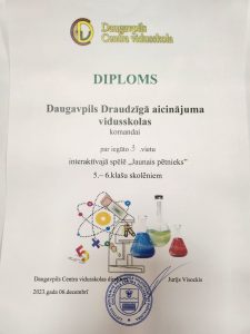 Daugavpils Draudzīgā aicinājuma vidusskolas 6.kl. komandu ar iegūto 3.vietu pilsētas interaktīvajā spēlē-konkursā “Jaunais pētnieks”!