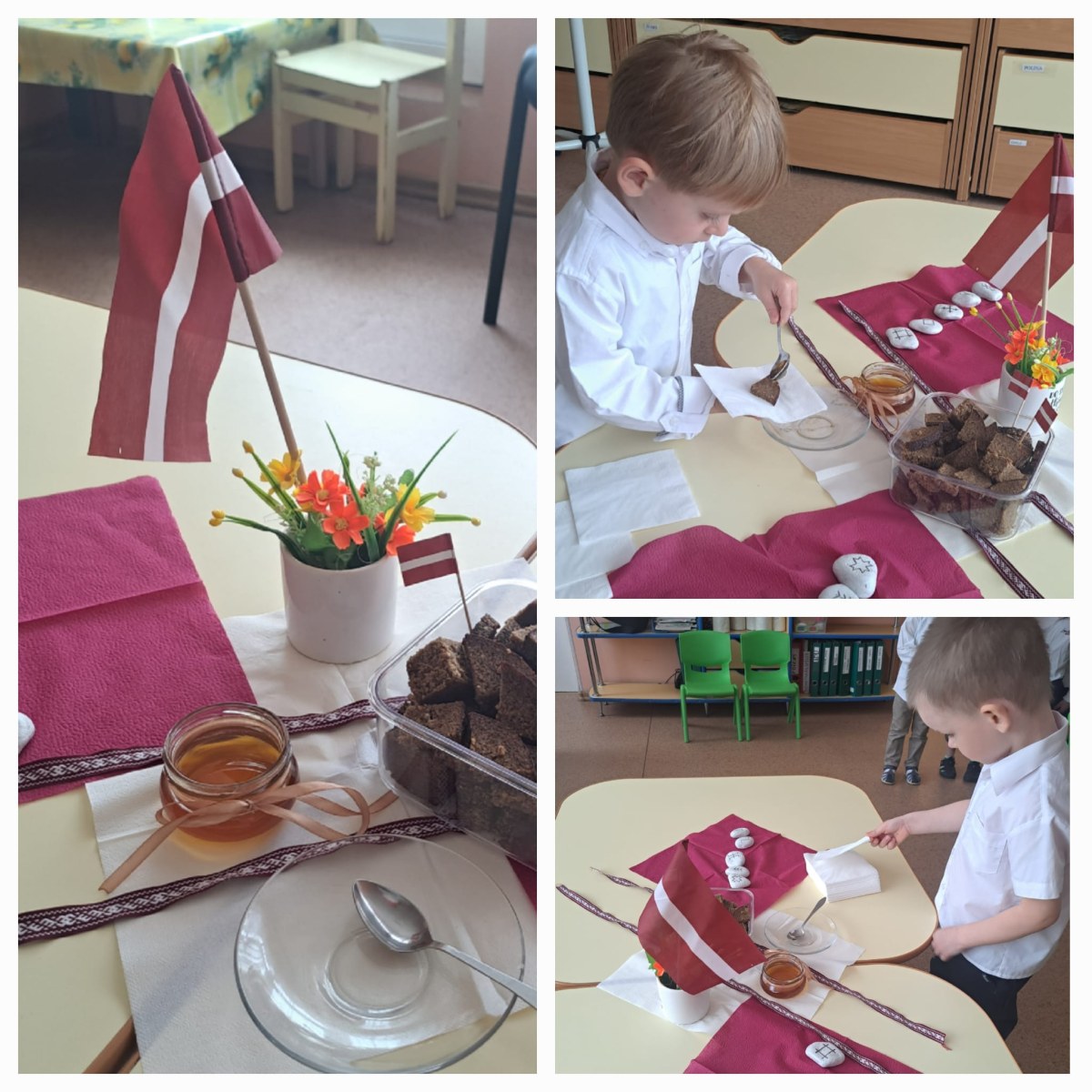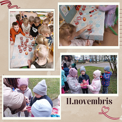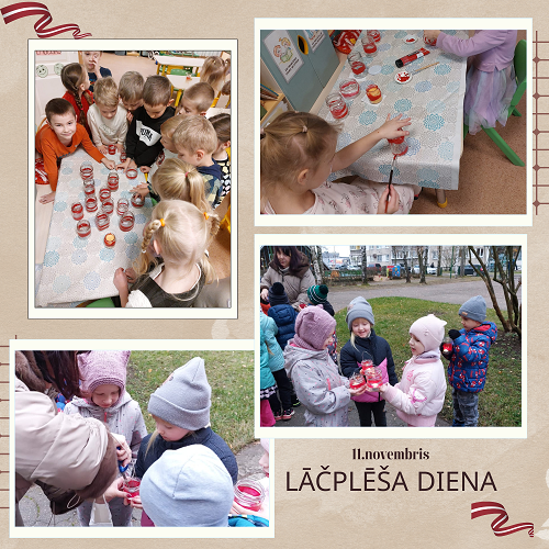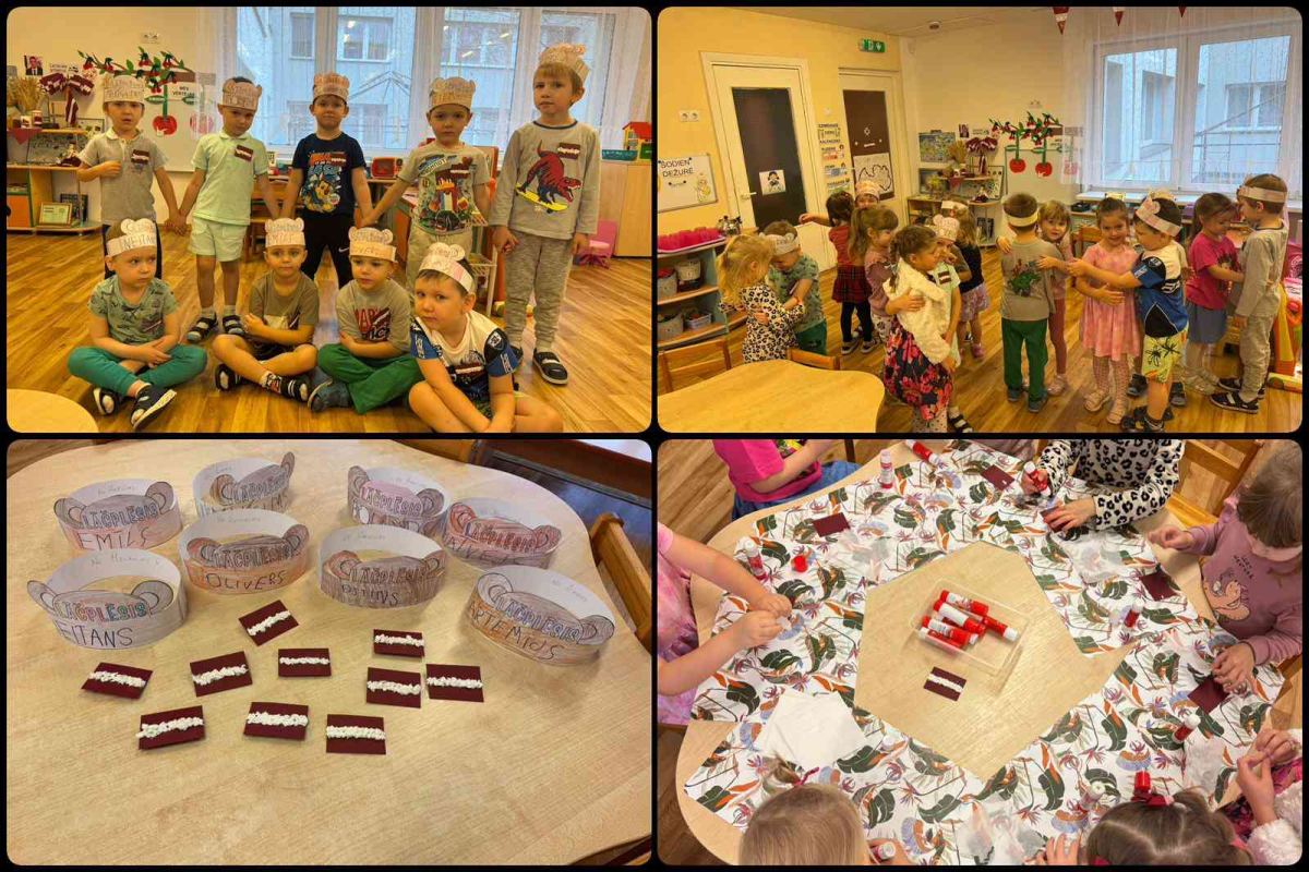 Tika izgatavotas un pasniegtas dāvanas grupu zēniem. Pašu rokām darinātas apsveikuma kartiņas tētiem. Bērni sacentās sporta izpriecās “Stiprie Lāčplēši”, parādot savu veiklību un spēku. Vakarā iestādes teritorijā notika svecīšu aizdedzināšanas tradīcija, kuras laikā bērnu pašdarinātos svečturos tika ievietotas un iedegtas svecītes, tā godinot brīvības cīņās kritušos karavīrus.