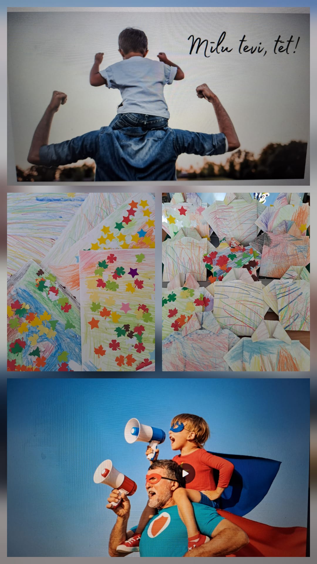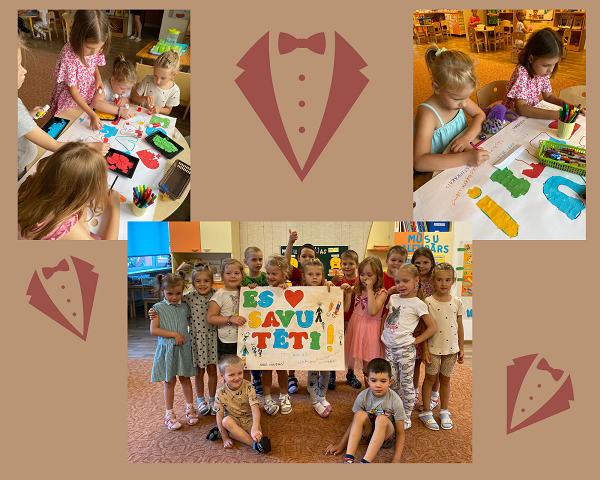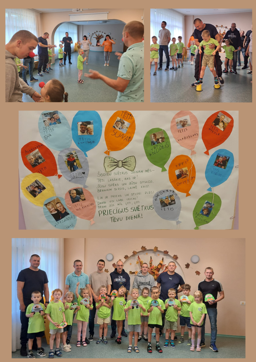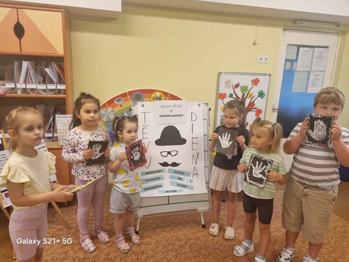 Gatavojoties šiem sirsnīgajiem svētkiem, bērni veidoja apsveikuma kartītes, zīmēja tēvu portretus un attēloja abpusēji ciešo draudzību, darināja plakātus ar mīļiem un sirsnīgiem vārdiem, kā arī ierakstīja video sveicienus saviem tētiem. Mazie ķipari arī apdrukāja audumu, no kura tika šūts īpašs pārsteigums – krekls tētim. Šīs dāvanas bērni ar lepnumu un sajūsmu pasniedza saviem tētiem pēcpusdienā. Grupās bērni dalījās stāstos par savu tēvu rūpēm un mīlestību ikdienā, pārrunāja, ko katram nozīmē “tētis”. Sagatavošanas grupas bērni paši gatavoja sviestmaizes un klāja galdu, lai radītu īpašu un siltu mirkli kopīgai svinēšanai. Pasākuma laikā tēti kopā ar saviem bērniem tika iesaistīti sportiskās un izklaidējošās aktivitātēs. Noslēgumā visus gaidīja tējas pauze sirsnīgā un draudzīgā gaisotnē. Neizpalika arī pateicības vārdi un pārsteiguma dāvanas, kas iepriecināja ne tikai tēvus, bet arī vectēvus – arī viņiem bērni bija sagatavojuši īpašus apsveikumus. Pasākuma izskaņā bērnu sejās mirdzēja prieks, un viņi ar pārliecību teica: “Mans tētis ir mans SUPERVARONIS!”
