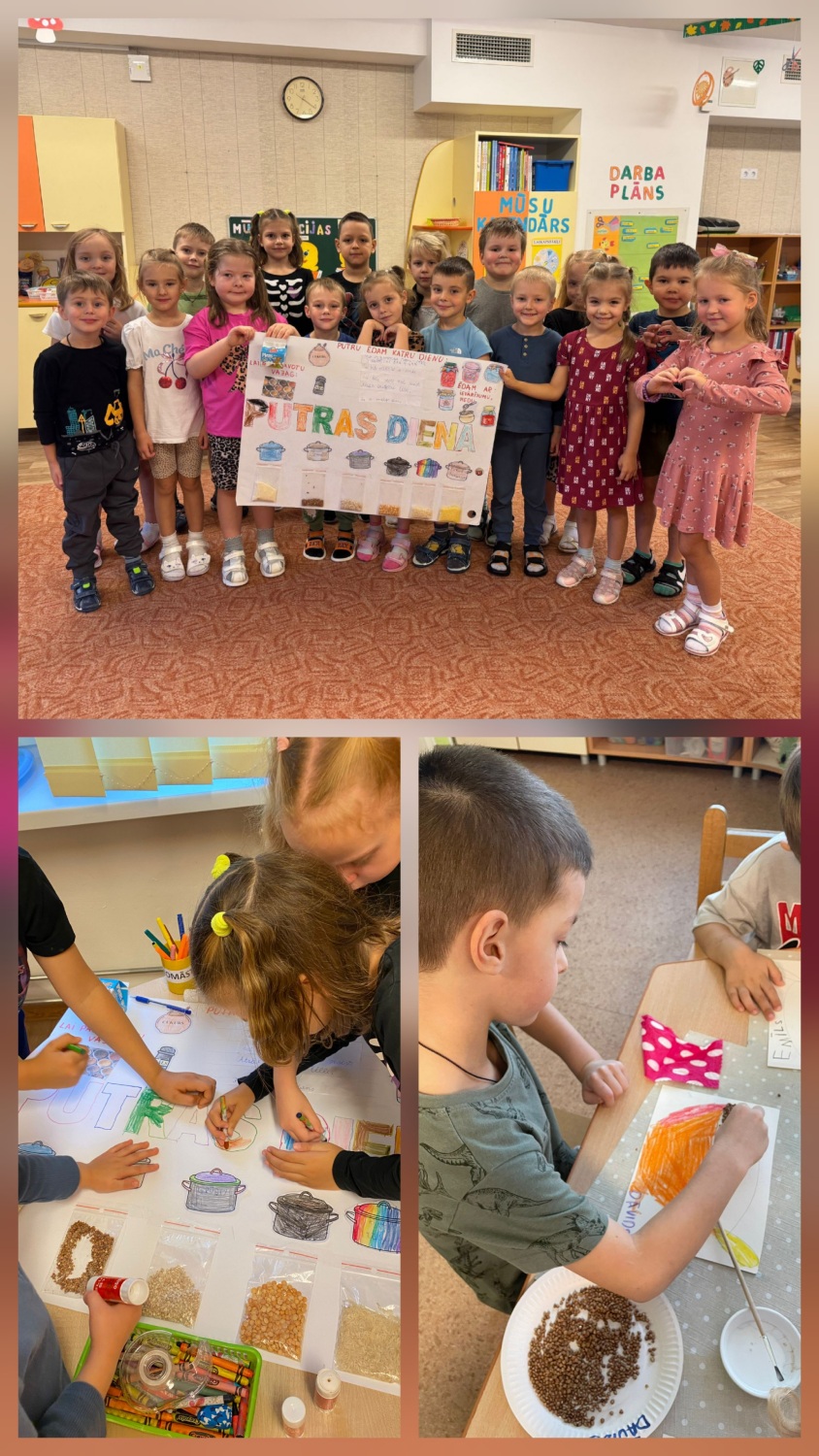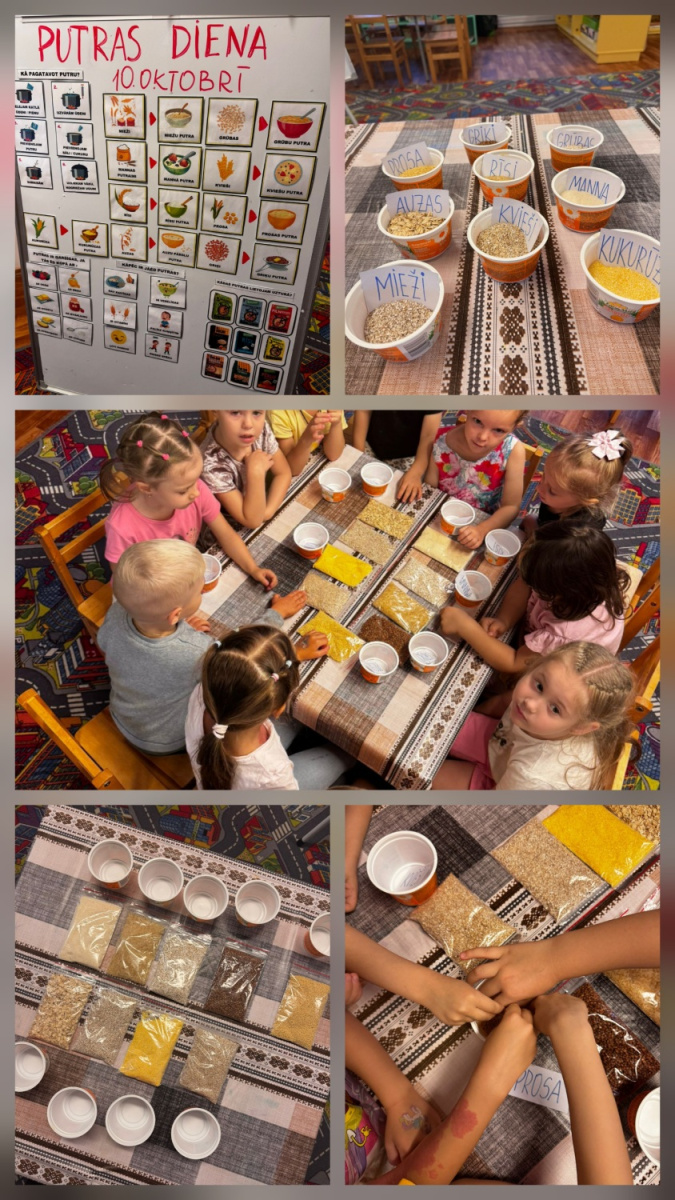 Šodien visās pirmsskolas grupās valdīja īsta “putras noskaņa” – bērni svēra putraimus, zīmēja un līmēja, veidojot savu gardāko putras šķīvi, iepazinās ar receptēm un piedalījās putras gatavošanā. Mazie pavāri mācījās mērīt sastāvdaļas, skaitīt, dalīt vienādās (un arī nevienādās) daļās, salīdzināt un plānot, tādējādi praktiski apgūstot matemātikas un loģiskās domāšanas prasmes rotaļu veidā. Daudzi bērni ar lepnumu atzina – tagad mājās putru ēdīs vēl biežāk, jo pašu gatavotā taču ir visgardākā! Rotaļnodarbību laikā bērni arī iepazinās ar graudaugu daudzveidību – auzām, miežiem, griķiem, kviešiem un citiem, pārrunājot, kā katrs no tiem palīdz augt stipriem un veseliem. No veselības viedokļa putra ir viens no ieteicamākajiem brokastu ēdieniem – tā palīdz uzturēt stabilu enerģijas līmeni, uzlabo gremošanu un stiprina imunitāti. Uztura speciālisti uzsver, ka graudaugi ir īpaši svarīgi bērnu augšanas un attīstības periodā, jo tie satur B grupas vitamīnus, minerālvielas un šķiedrvielas. Diena aizritēja radošā un sirsnīgā gaisotnē – bērni mācījās, darbojās un ar prieku atklāja, cik interesanti ir iepazīt veselīga uztura pasauli.
