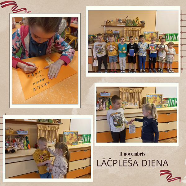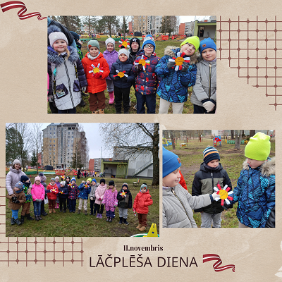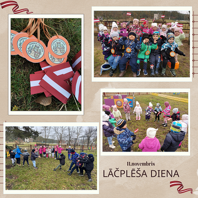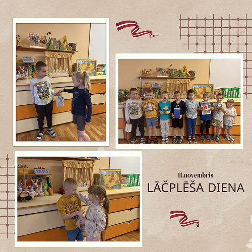 Nedēļa starp 11.novembri, Lāčplēša dienu, un Latvijas dzimšanas dienu 18. novembrī tiek dēvēta par patriotu nedēļu. Tas ir laiks, kad runājam par valsts vēsturi un neatkarību. Organizējot dažādus patriotiskos pasākumus, jau no pirmsskolas vecuma mēs sekmējam jaunākās paaudzes piederību savai valstij. Lāčplēša diena ir kļuvusi par Latvijas armijas svētku dienu. Šajā dienā organizētie pasākumi sniedz iespēju visiem atgādināt neatkarības vērtību. Mūsu pirmsskolā (Raipoles ielā 8, Stāvā ielā 41) Lāčplēša dienā notika ļoti daudzveidīgi pasākumi, kuri saliedēja bērnus un veidoja viņiem izpratni par šiem svētkiem.