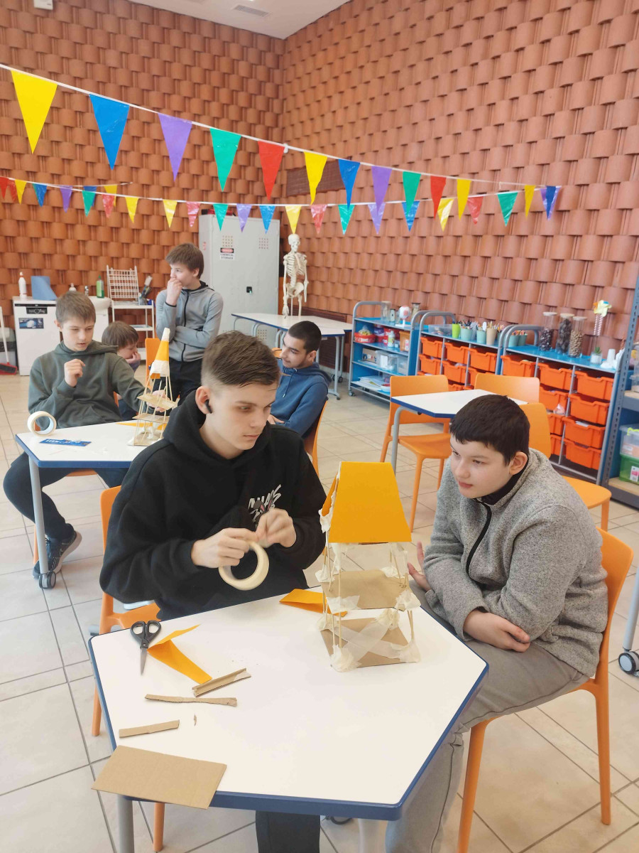 Šī darbnīca piedāvā ideālu līdzsvaru starp izglītojošu saturu un jautru sacensību garu. Skolēniem bija dota iespēja izveidot māju modeļus tā, lai tie spētu izturēt iespējamo “zemestrīci”. Katram bija jāuzņemas arhitekta loma un jāuzceļ māja, kas var izturēt zemestrīces radītās vibrācijas. Māju būvēšanai tika izmantoti vienkārši materiāli – papīrs, kociņi un līmlente. Bija ļoti aizraujoši un jautri, kad sākās modeļu pārbaude ar “zemestrīci”. Skolēni skuma par katru nokritušo mājas detaļu, taču, par laimi, to nebija daudz.